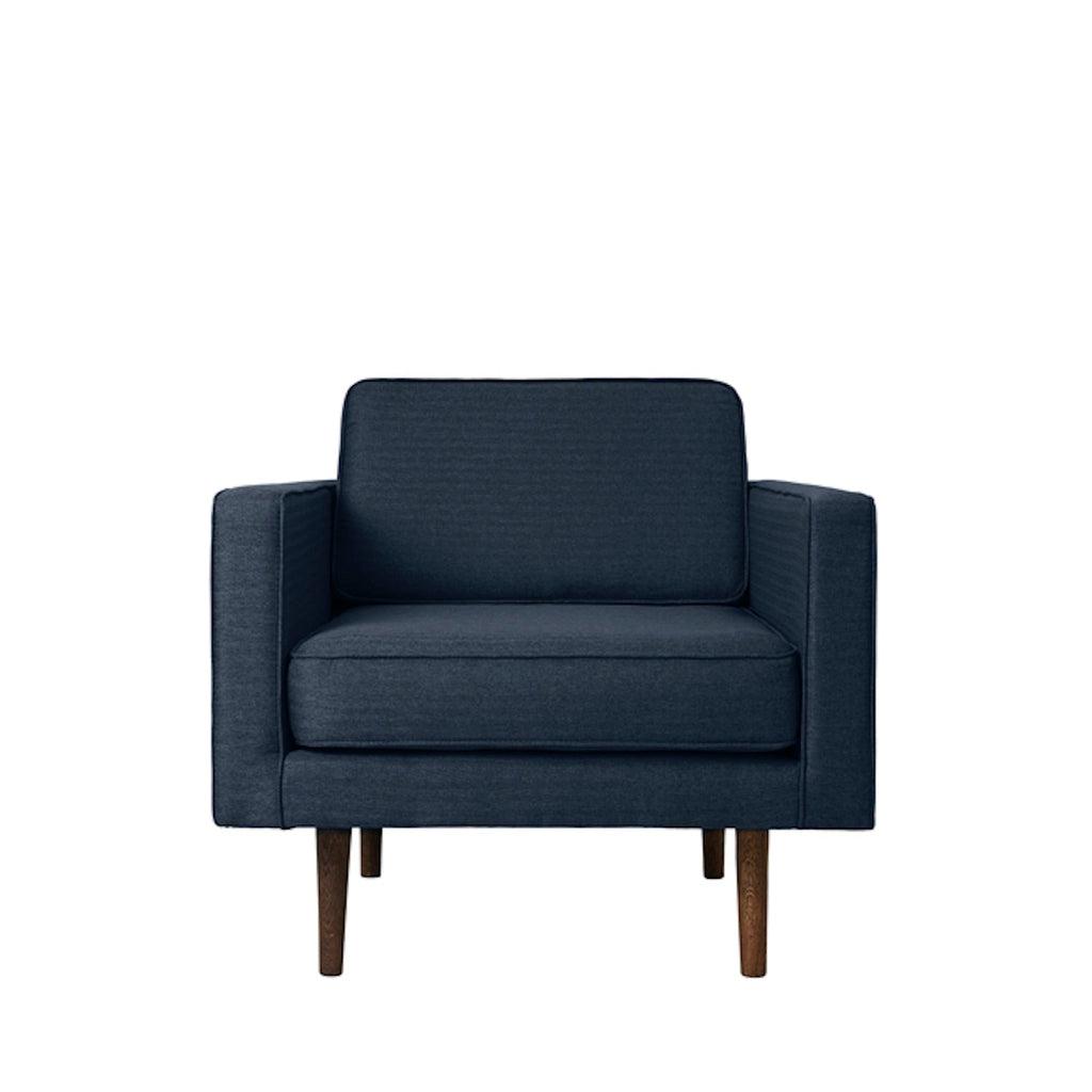 Broste Copenhagen’s Classic Wind Tweed Armchair in Navy is a modern icon that combines style and durability. Its solid oak legs, treated with a rich dark stain, support a sturdy hardwood and ply frame, offering both elegance and reliability. Upholstered in high-quality tweed, this armchair exudes timeless sophistication, making it a versatile addition to any contemporary home.