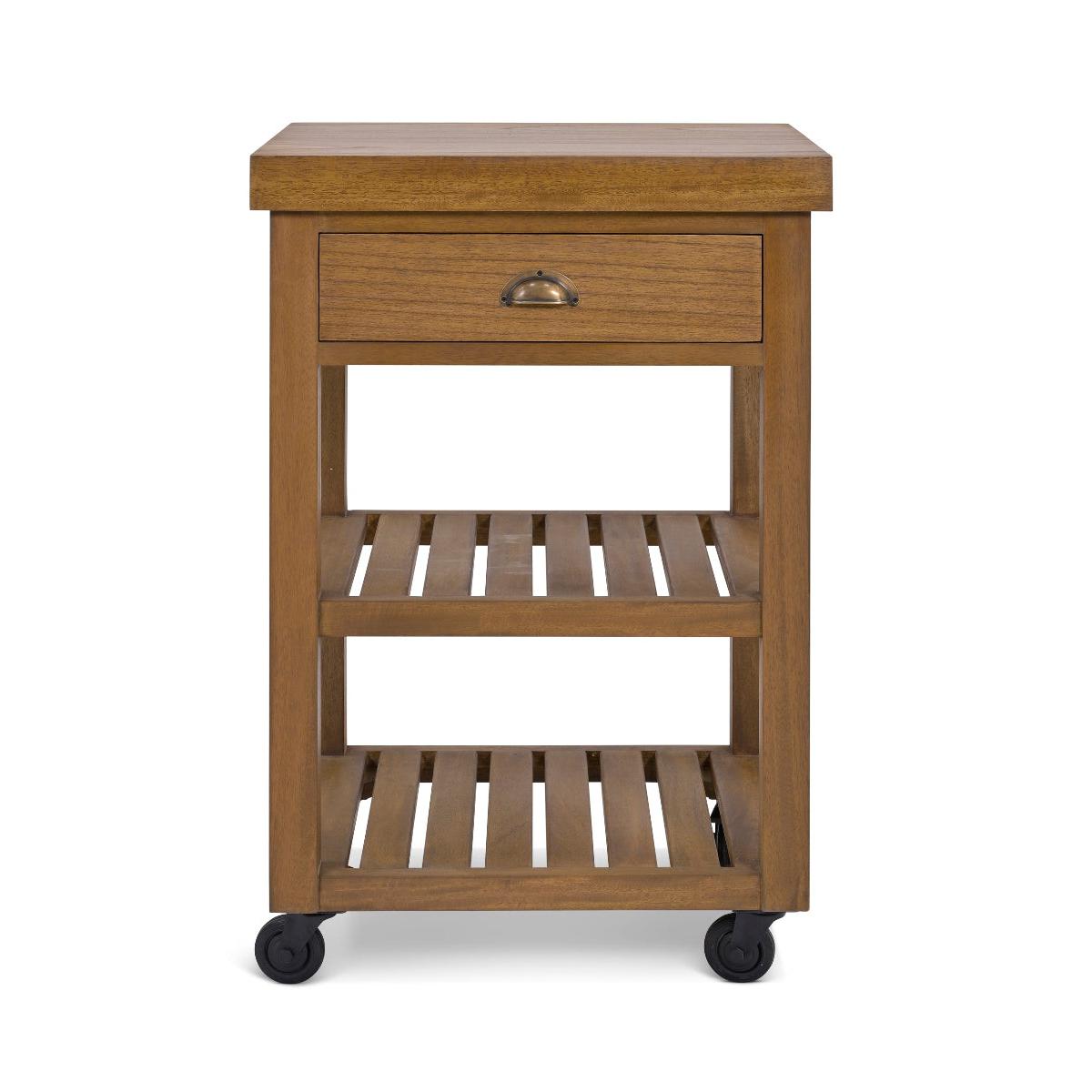 The spacious top provides plenty of room for food preparation, while the two lower shelves are perfect for storing saucepans, pots, and other kitchen essentials. The drawer, with its antique brass pull handle, offers additional storage for chopping accessories or utensils. Complete your country kitchen look with our matching Walcote Kitchen Island and Walcote Shelves.