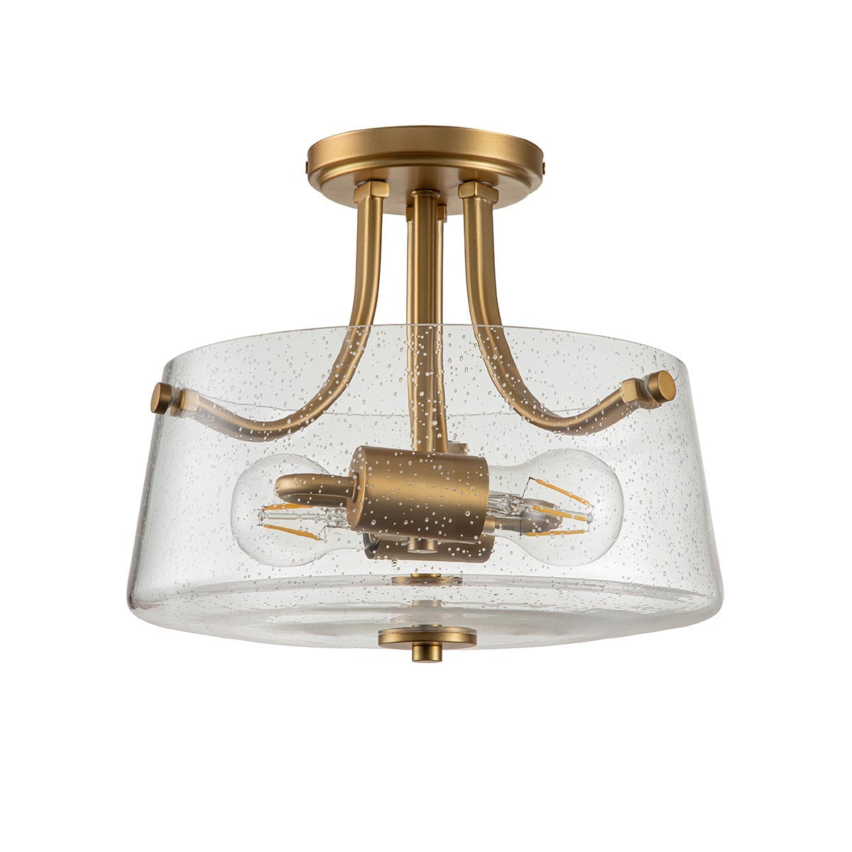 The Hollister semi-flush ceiling light has a subtle seeded glass surround, giving the light a playful environment.