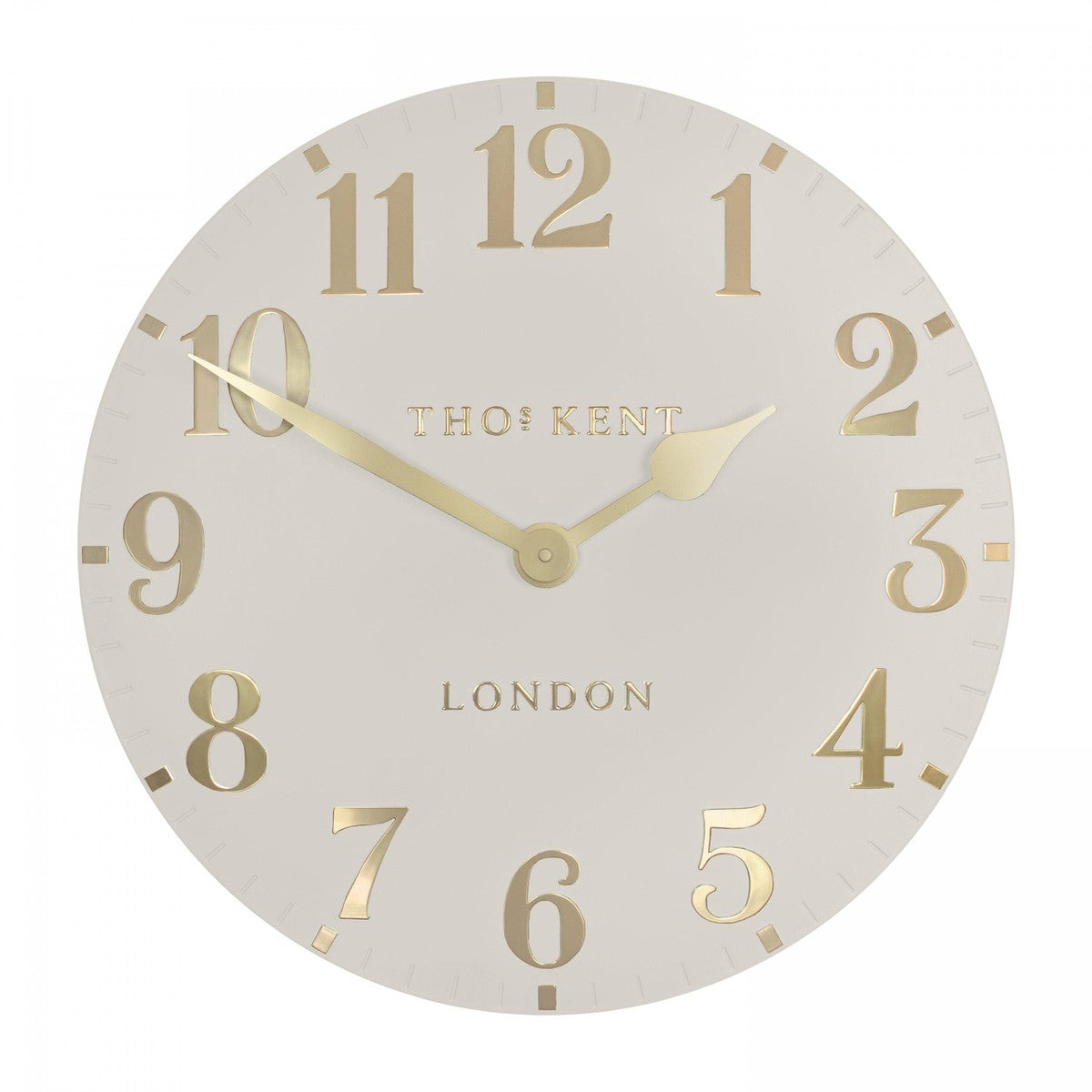 The Arabic is Thomas Kent’s signature wall clock that has stood the test of time. Presenting an impressive 20-inch open-face timepiece, this beautiful shade of Oatmeal with gold metallic hands flows seamlessly across the surface whilst the raised, contrasting hands and numerals give the wall clock great depth.