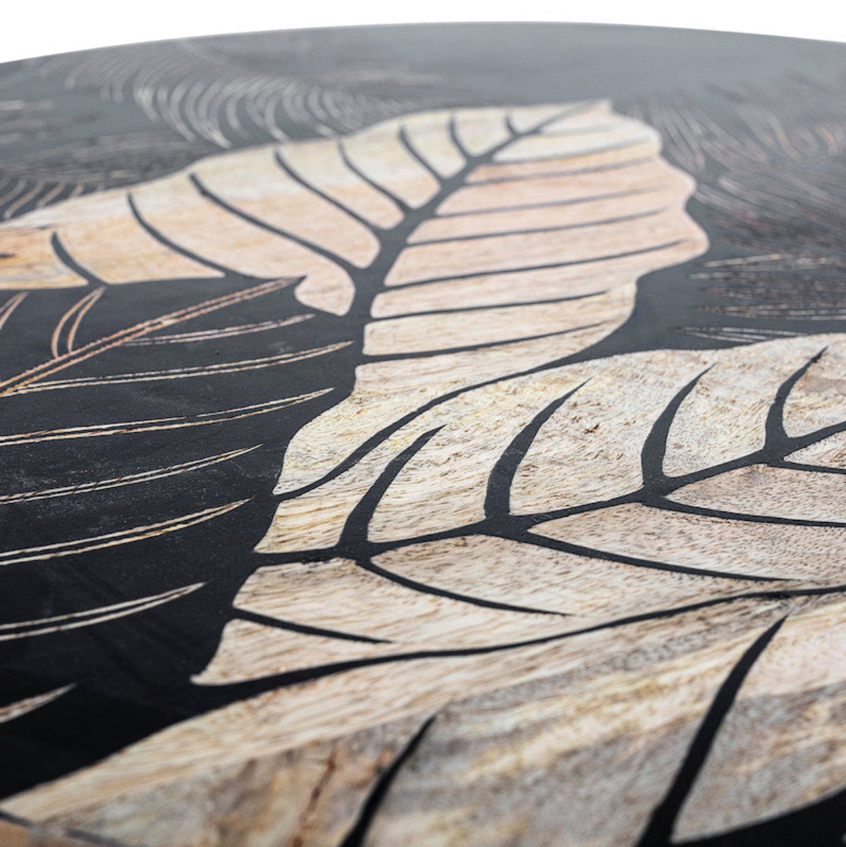 The Lac Coffee Table by Creative Collection stands out with its black-stained mango wood and intricate hand-carved leaf motif.