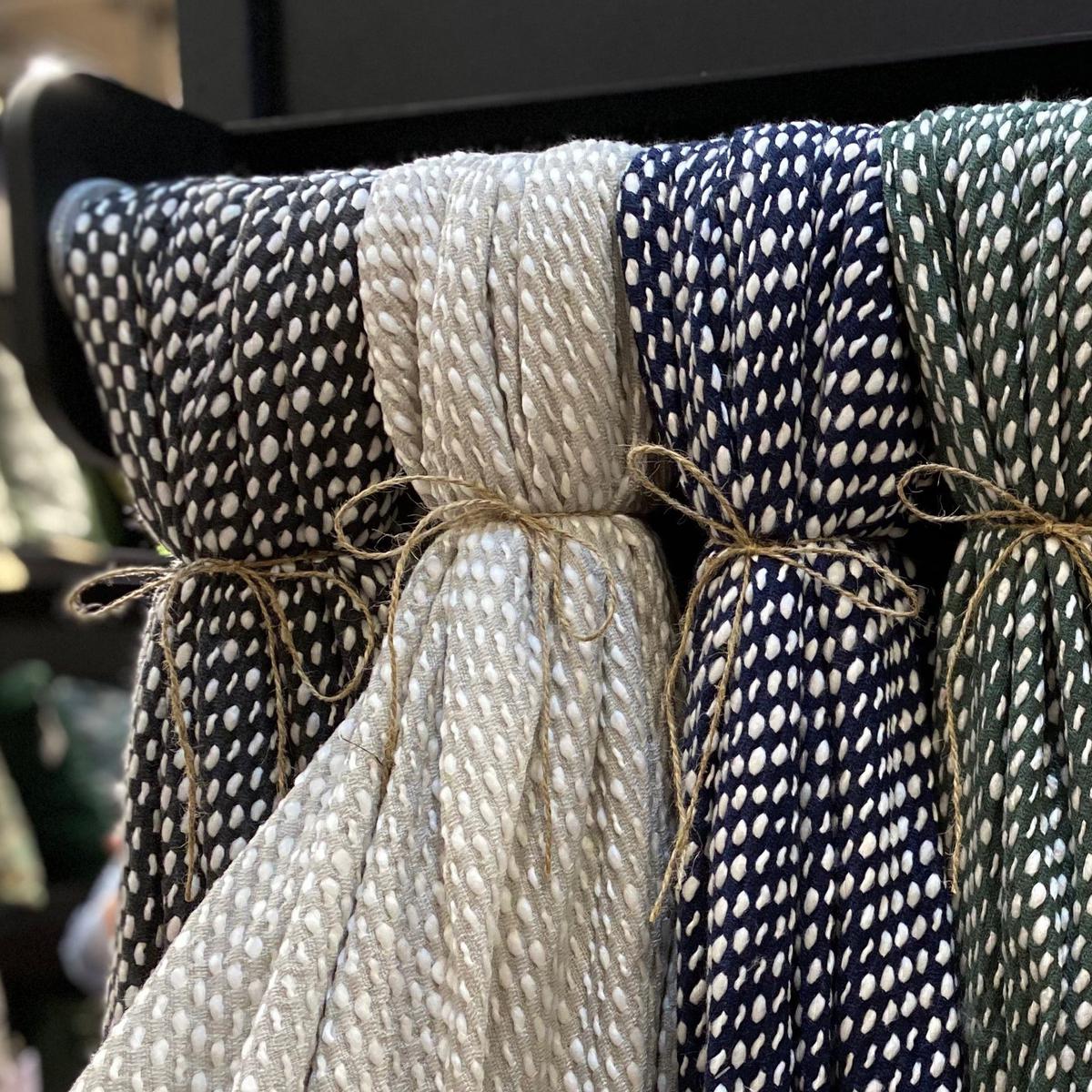 The Malini Raindrops Navy Throw brings a sophisticated touch to any space with its unique raindrop effect in deep navy and ivory hues.