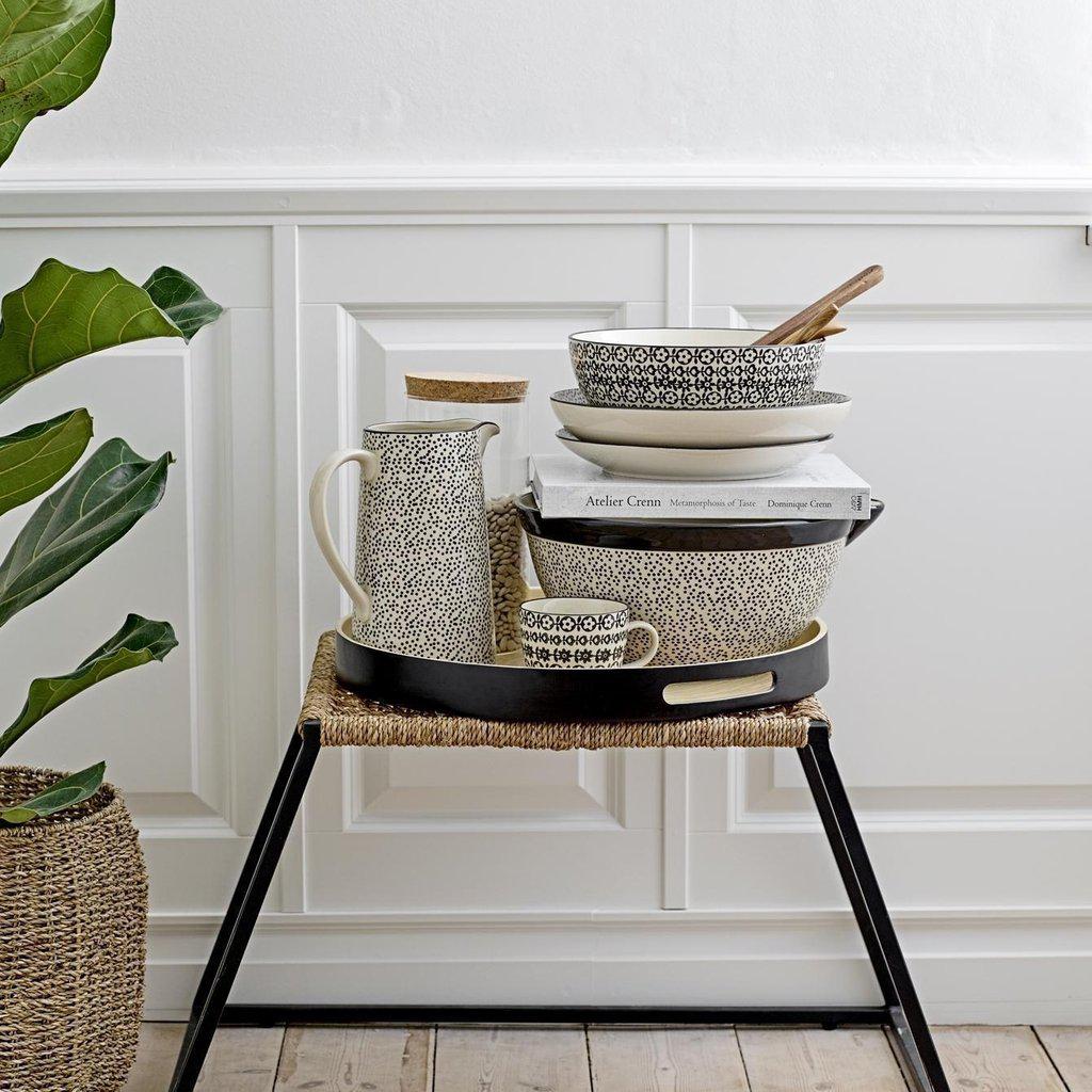 This colourful ornamental Bloomingville Karine espresso cup and saucers set gives any dining table a light and playful look.