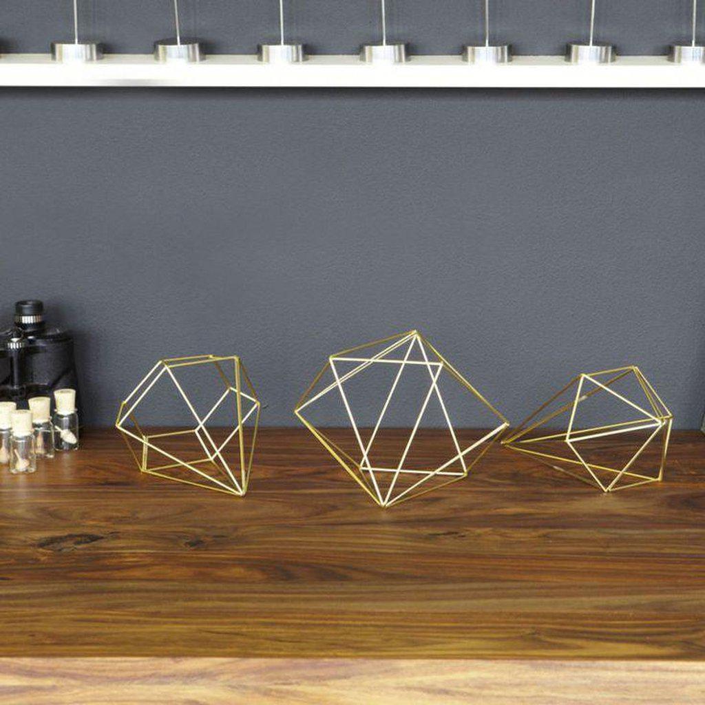 Achieve an effortlessly stylish and modern vibe in any space with Umbra Prisma Wall Decor, available in both matte brass and copper. This versatile metal design can be hung, mounted, or displayed on a counter-top, making it the perfect addition to any room. Each set includes three 3D Prismas of varying sizes. Explore the full Prisma collection featuring frames, mirrors, and jewellery displays for a cohesive look.