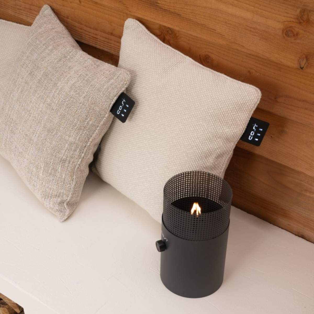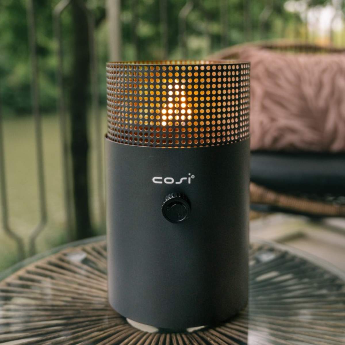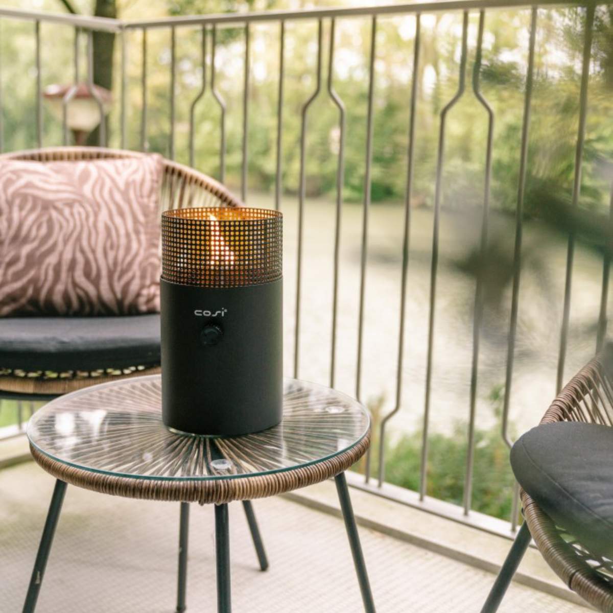 Introducing the Cosiscoop Dot, a versatile and stylish anthracite-coloured gas lantern, that can be used both indoors and outdoors, providing a fantastic distribution of light and a cosy ambiance. Its unique metal top with round cut-outs adds a touch of style to any setting.