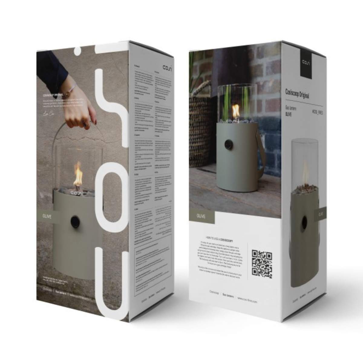 The portable metal and glass Cosiscoop lantern can be kept in your garden or taken on road trips.