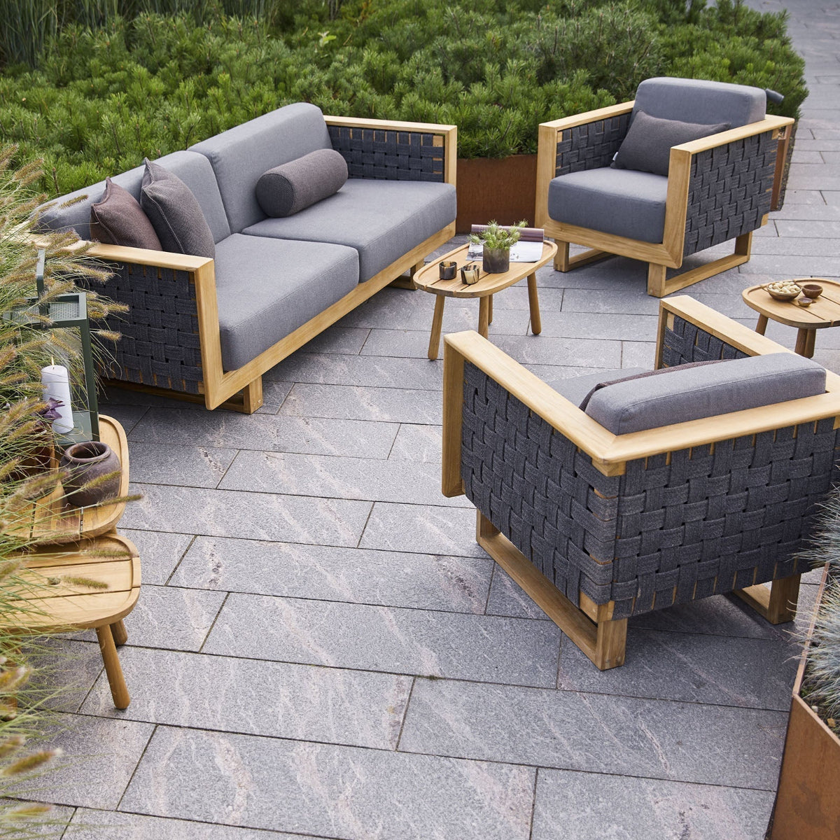Angle 3-Seater Sofa with Teak Frame - Incl. Grey Cane-Line Airtouch Cushion Set - Dark Grey, Cane-Line Soft Rope