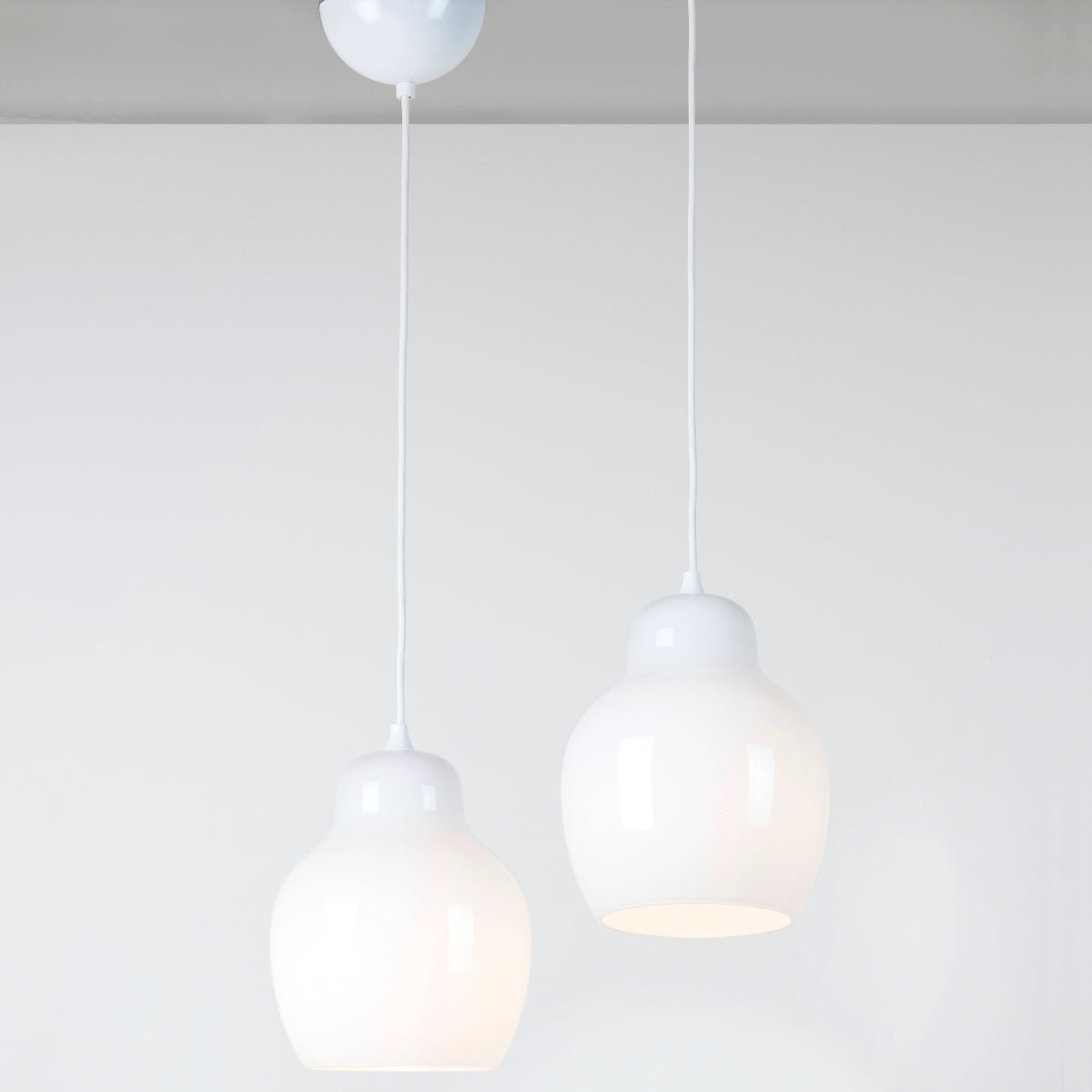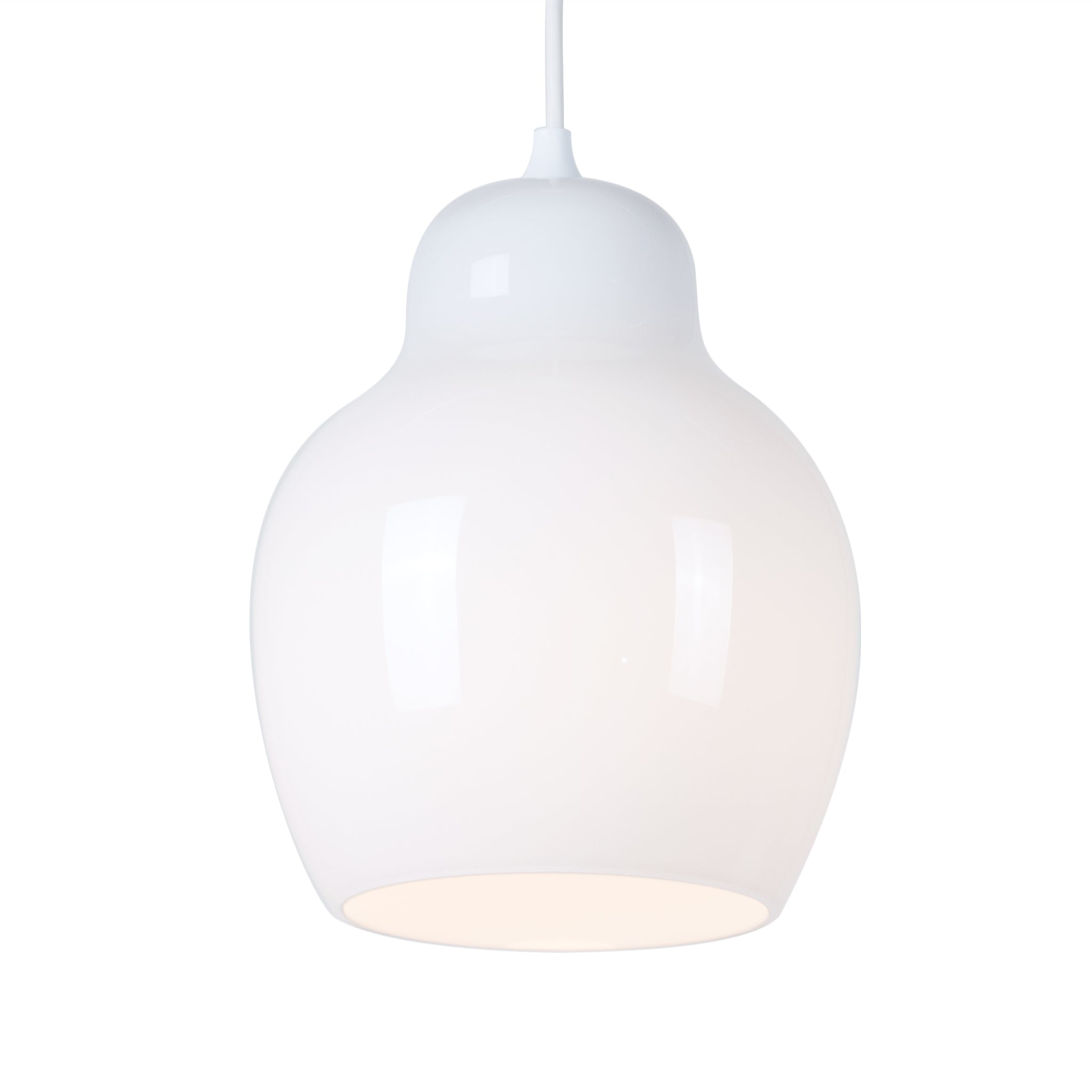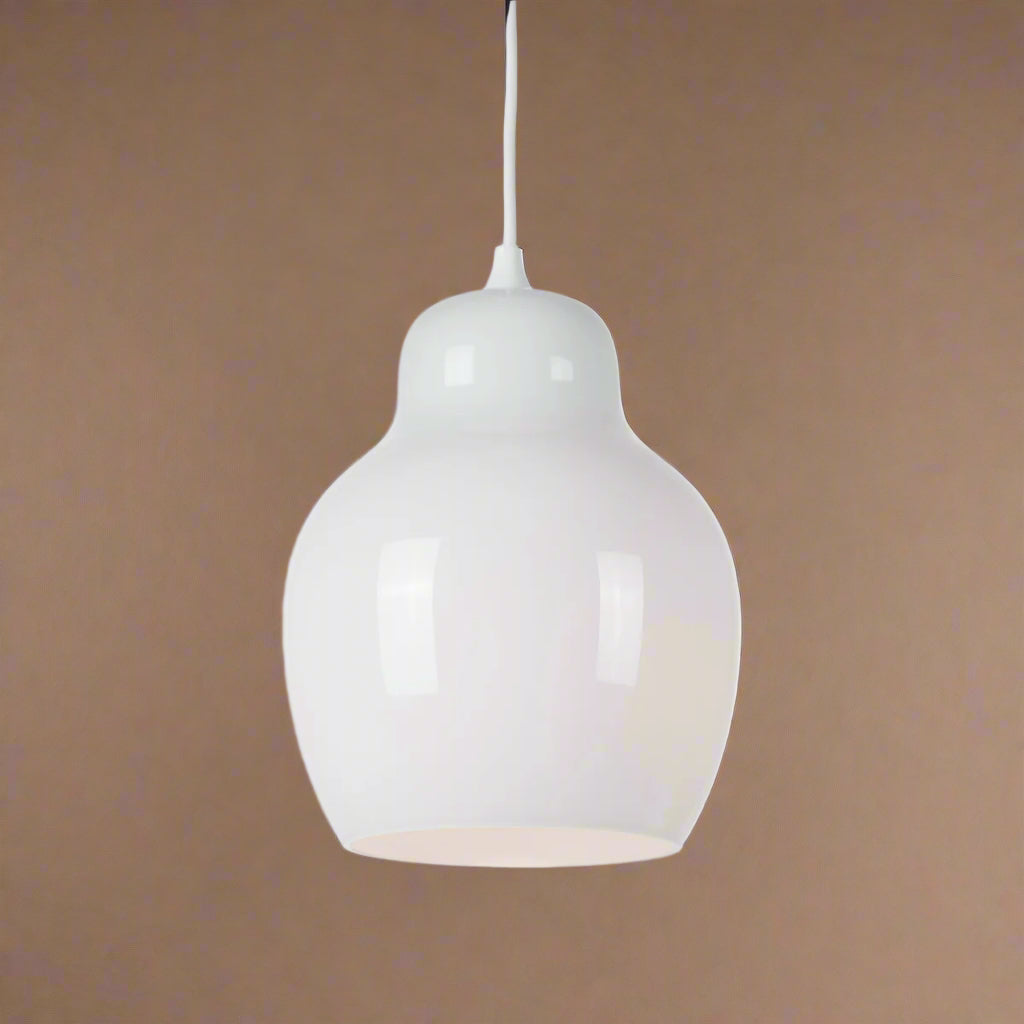 Crafted from high-quality, mouth-blown opal glass, it provides near-perfect, shadowless illumination. The matte white cable and white scalloped cap complement the superbly crafted glass, handmade by artisans in the Czech Republic.
