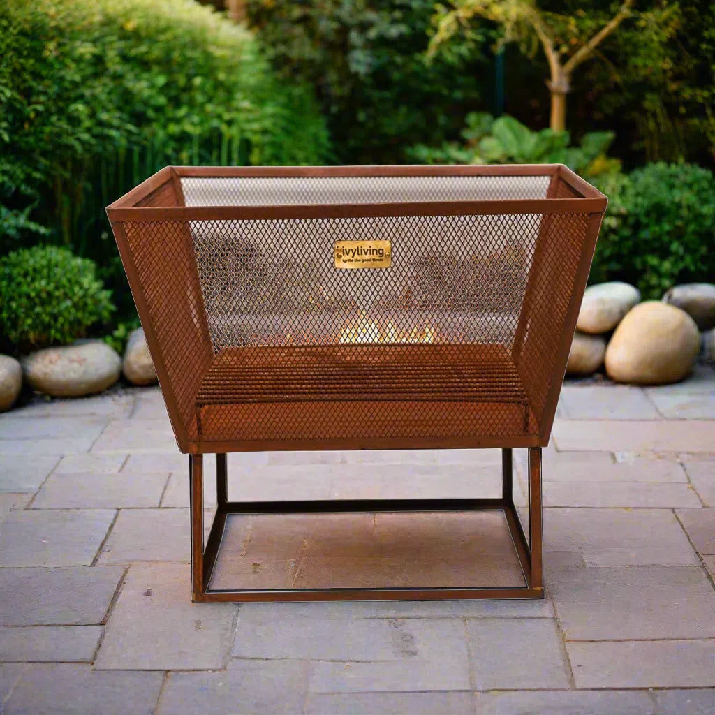 With its square shape and elevated stand, it efficiently dispels the chill while becoming a captivating focal point, perfect for hosting guests or relishing the beauty of the outdoors in style.