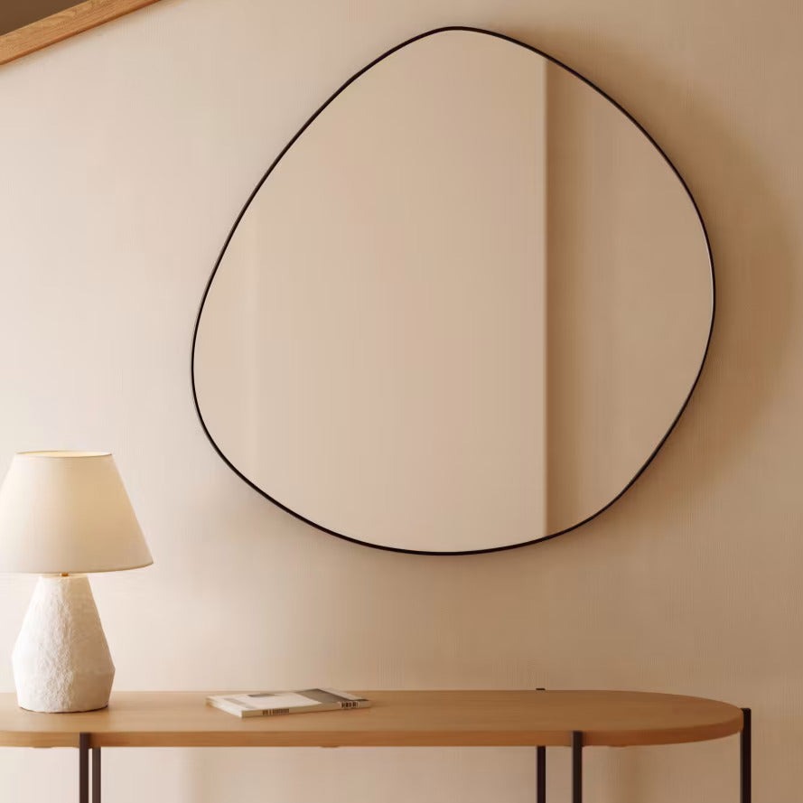 Experience the allure of imperfection with this exquisite asymmetric mirror. Some see a stone, others a droplet of water, yet all marvel at its originality and style, perfect for homes brimming with personality.
