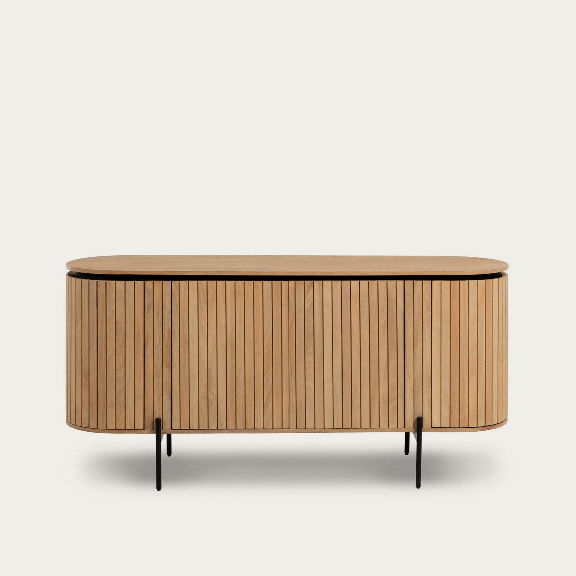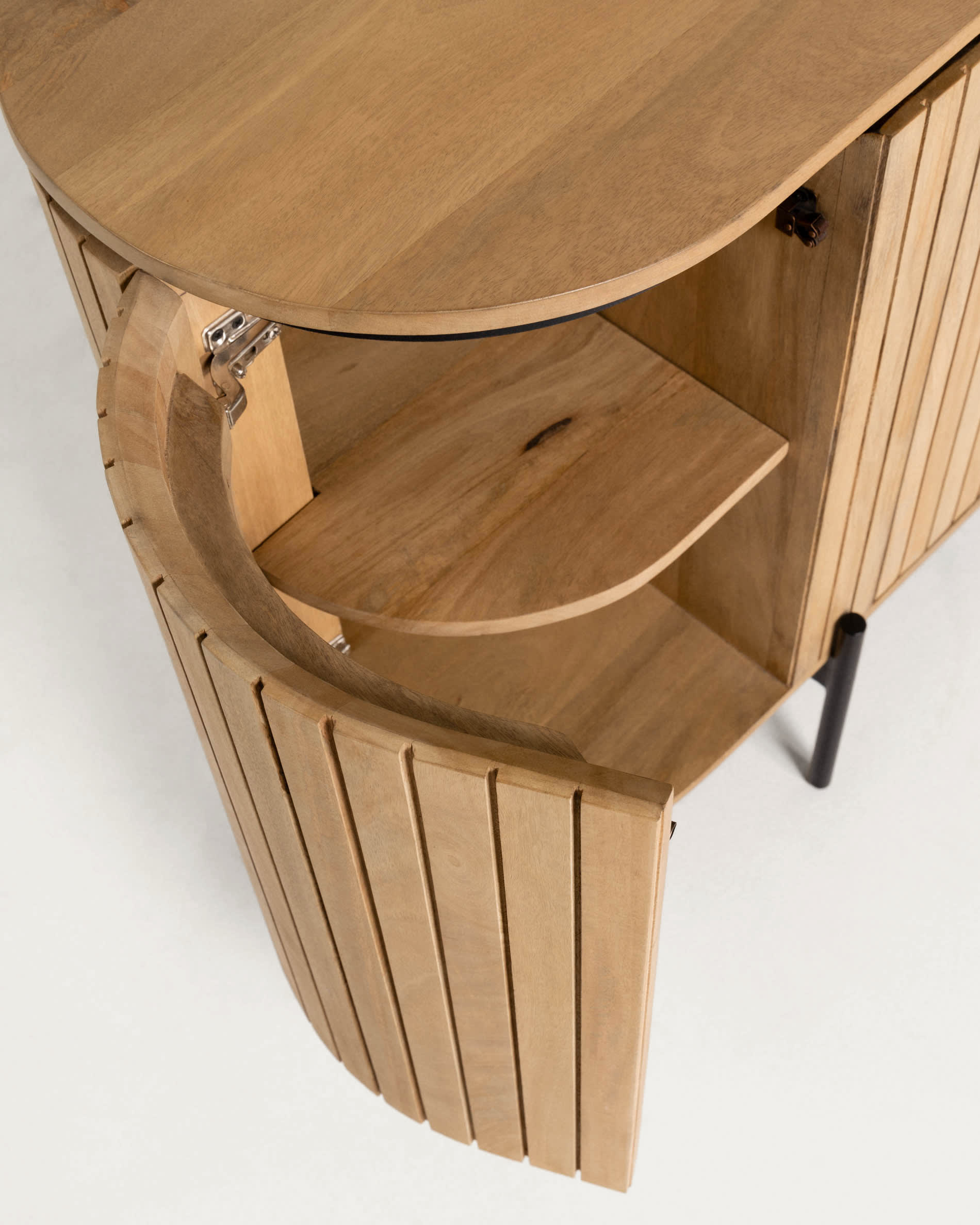 The Licia sideboard is made from mango wood, with pieces placed one-by-one that give it its shape and design. It has also been lacquered to brighten the colour of each piece, polished and moulded by hand.