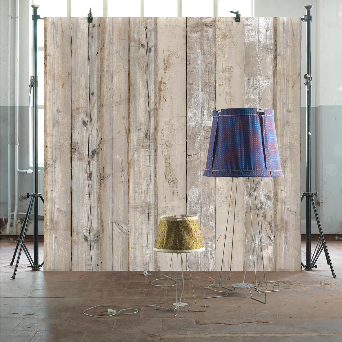NLXL Scrapwood Wallpaper PHE-07 is a designer collaboration between Piet Hein Eek and NLXL LAB, featuring square distressed wood blocks for a unique wall covering. The wallpaper is digitally printed on heavy-duty paper for a high resolution and realistic wood effect, with each roll covering 4.4m_. Effortlessly transform your walls by pasting the wallpaper directly onto the wall, not the article.