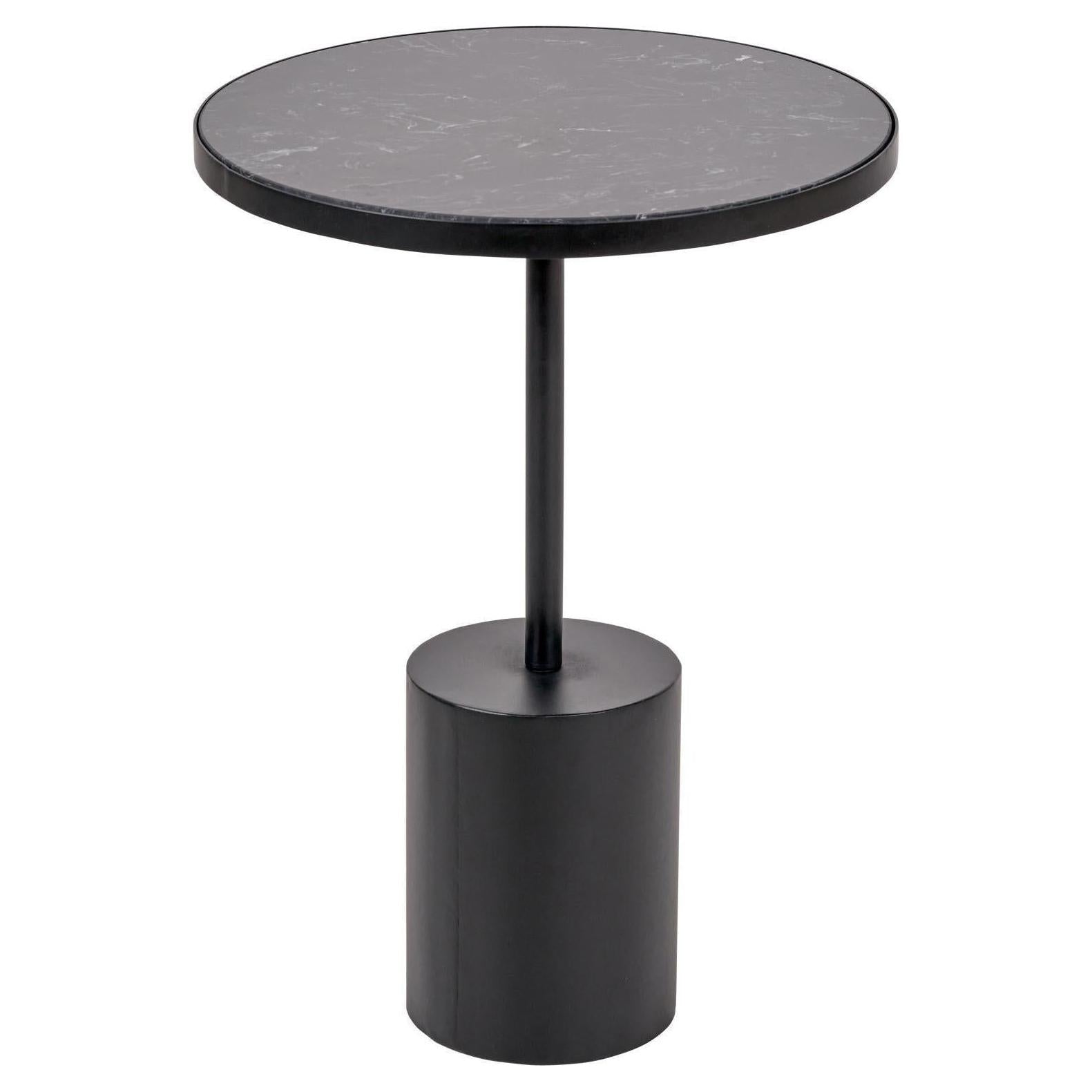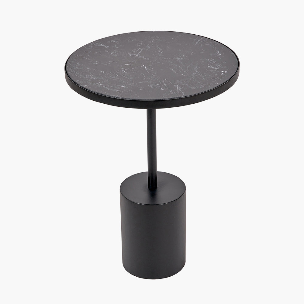 Beau&Co Loke Black Marble and Black Metal Cylinder Base Side Table