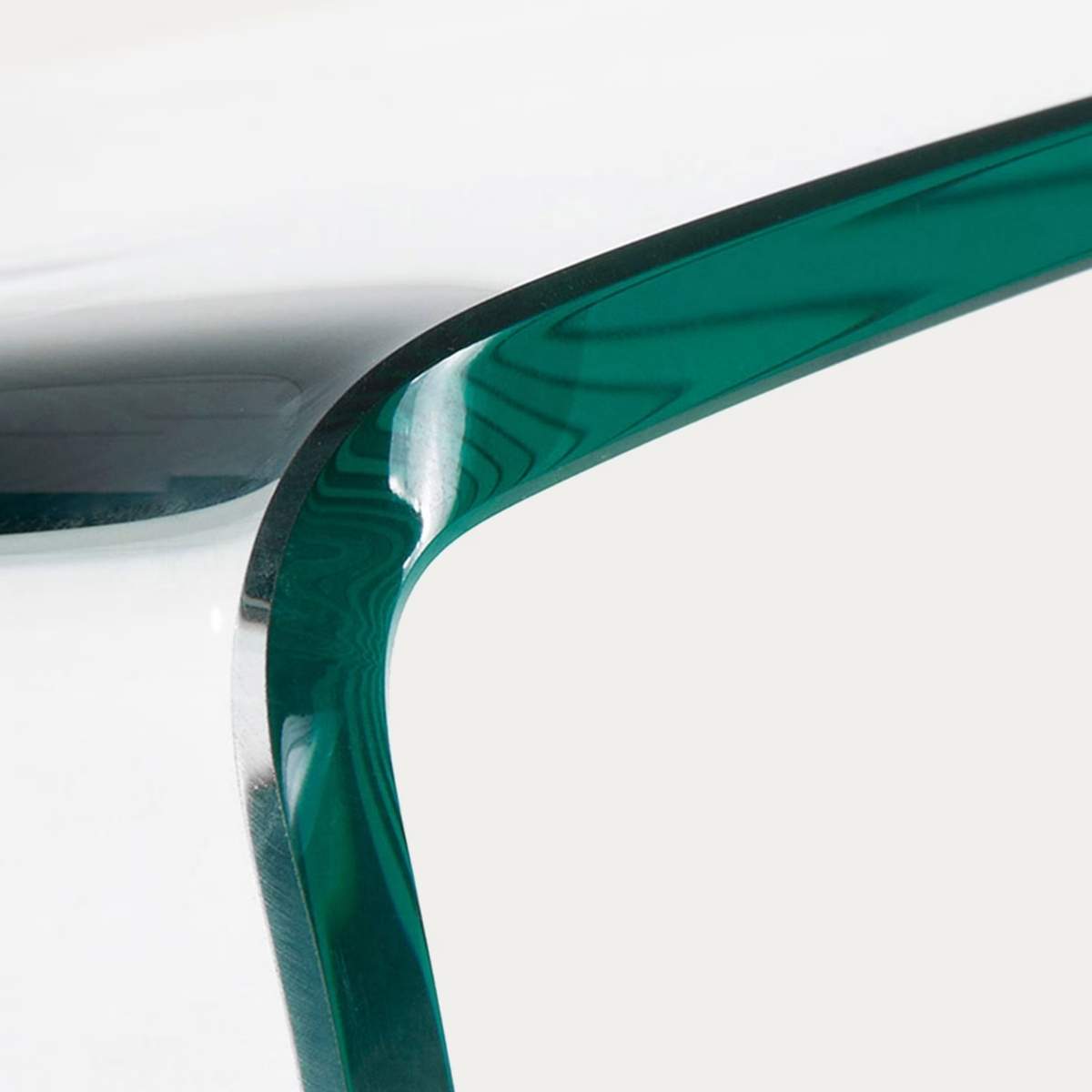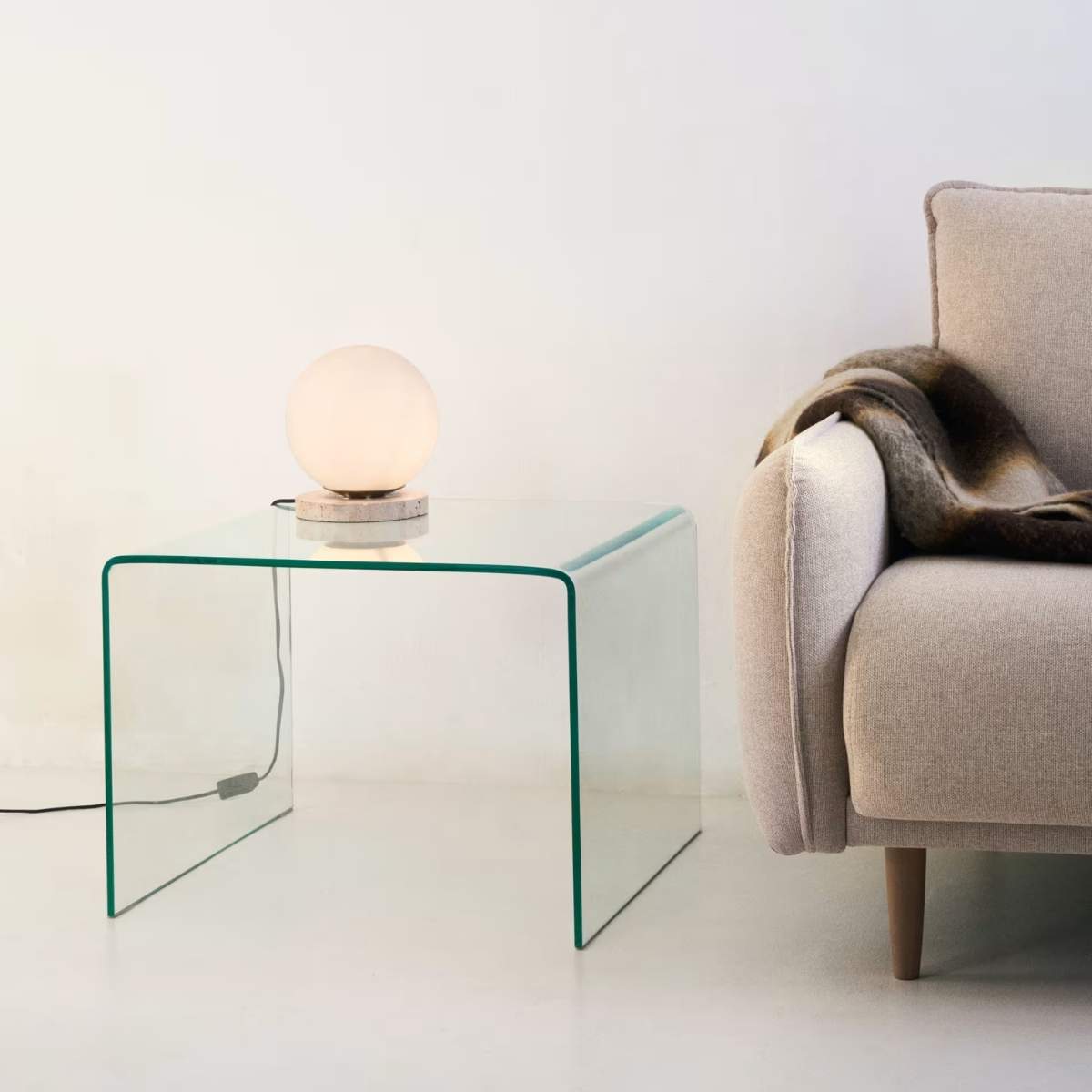 The Burano glass side table features a minimalist design with clean lines and rounded edges, crafted from durable tempered glass to enhance any living space