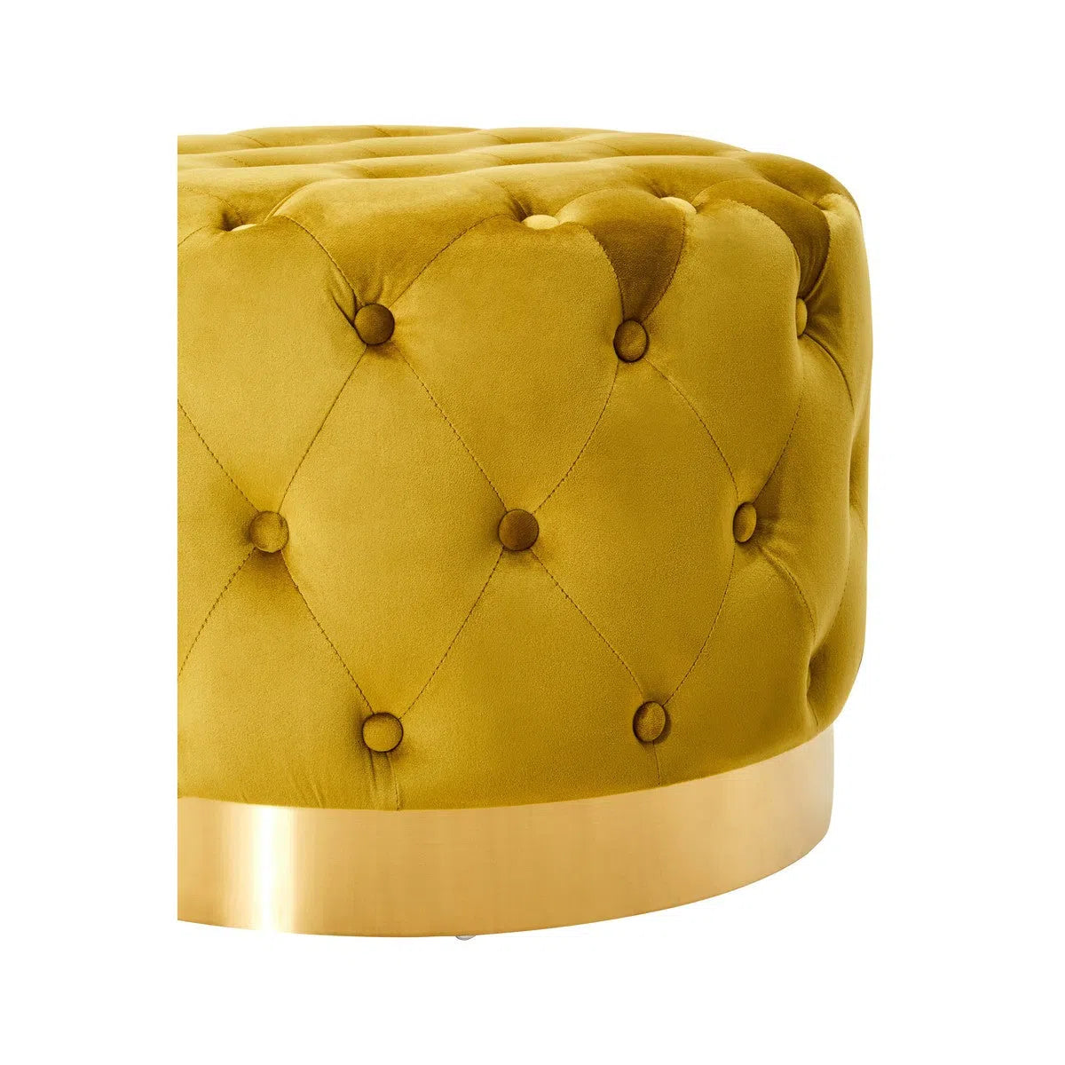 The sleek matte gold finish metal base complements the rich velvet, creating an opulent accent piece that enhances any room.