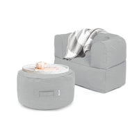 Experience ultimate comfort with the Slow Down Set NOAH, a luxuriously soft lounge set perfect for indoor relaxation. This set features a Tiny Moon pouf, an Arm-Strong Chair, a cozy blanket, and a stylish Terrazzo Tray.