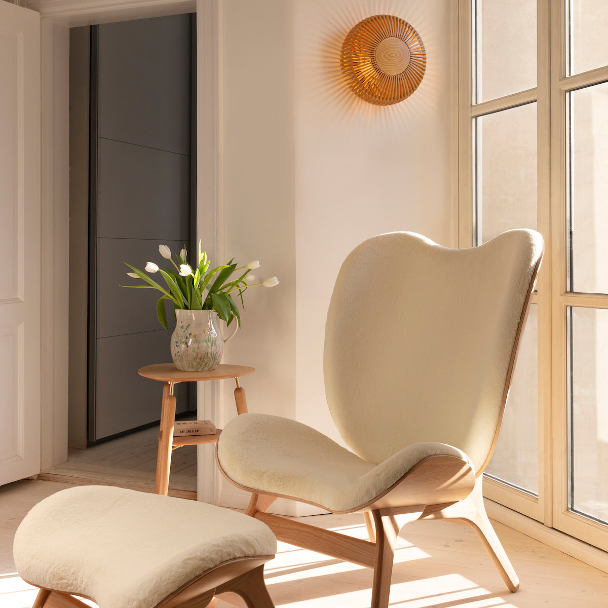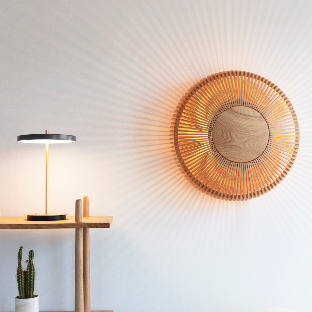 Umage is extending the sculptural Clava collection with a new variant for the wall, called Clava Up wood. The recognisable shape made from laser-cut wood lamellae is designed to illuminate home with a playful flash of light on the walls in the surrounding space.