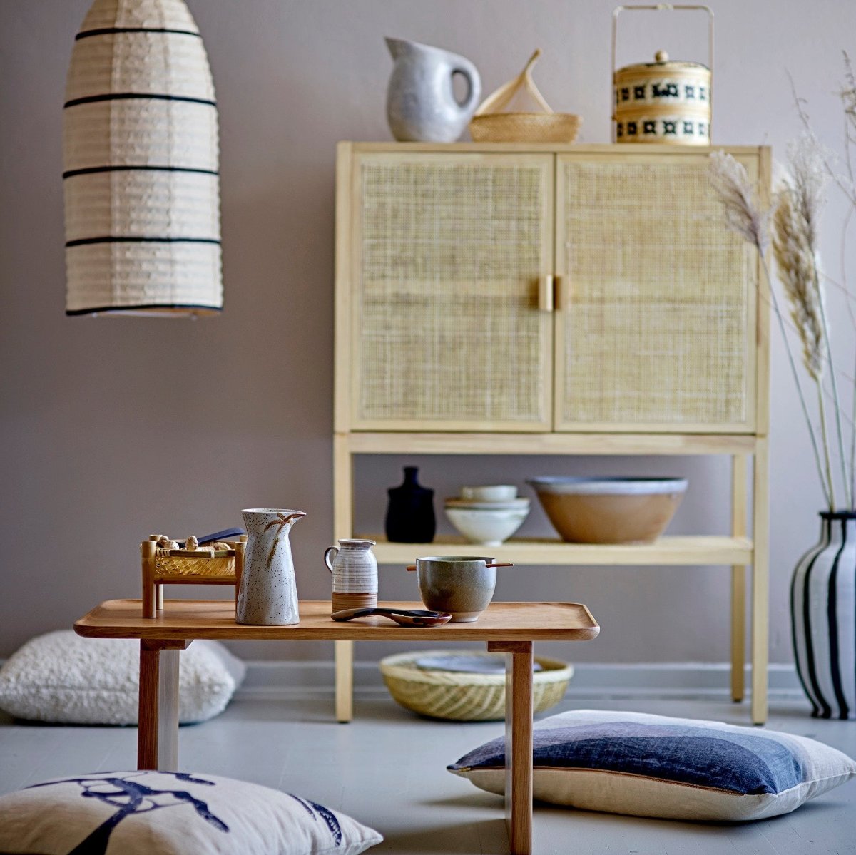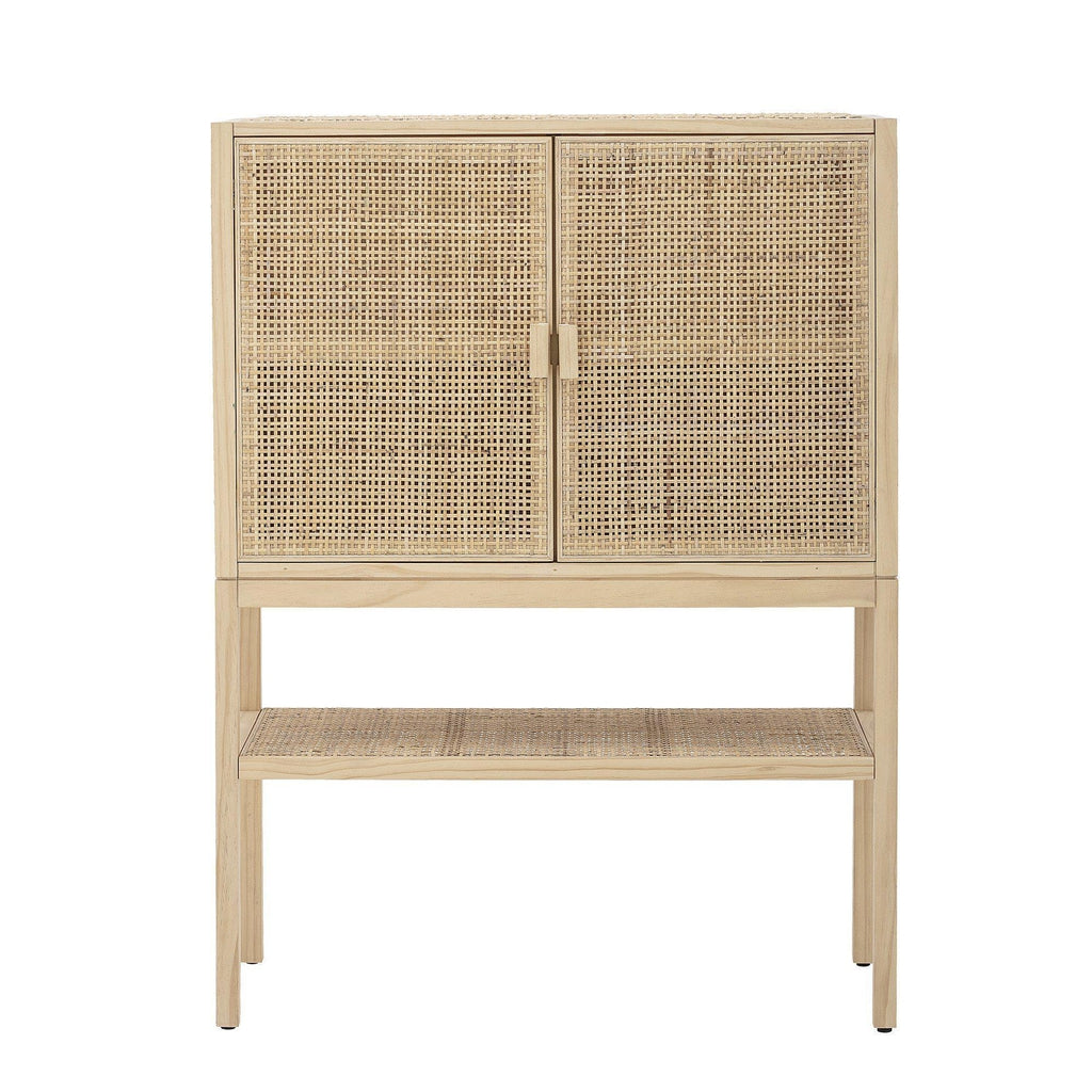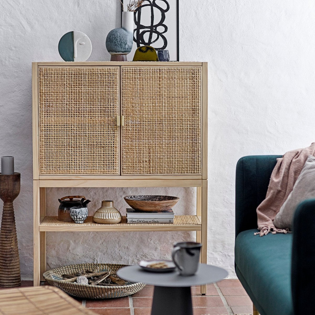 The Sanna Cabinet embodies Nordic minimalism with a cozy, natural touch, crafted from airy rattan and sturdy pinewood.