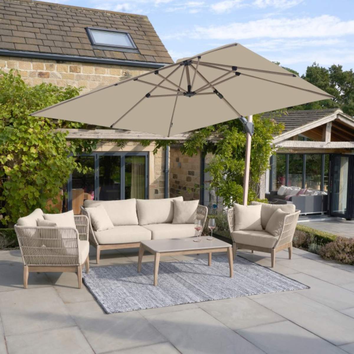 Beau&Co Challenger Teak T2 3m Square Premium Champagne Free Arm Parasol