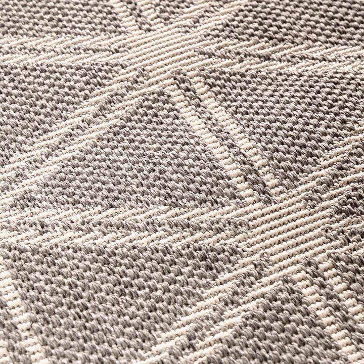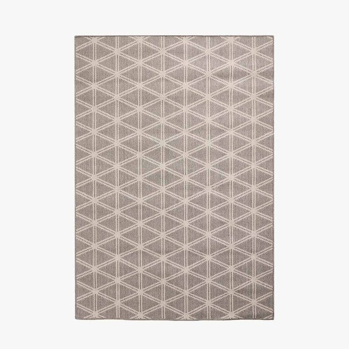 Durable, low-pile Polypropylene rug ideal for high-traffic indoor or outdoor spaces. Non-toxic, easy to clean, and resistant to mould and mildew. Stylish geometric design made in India.