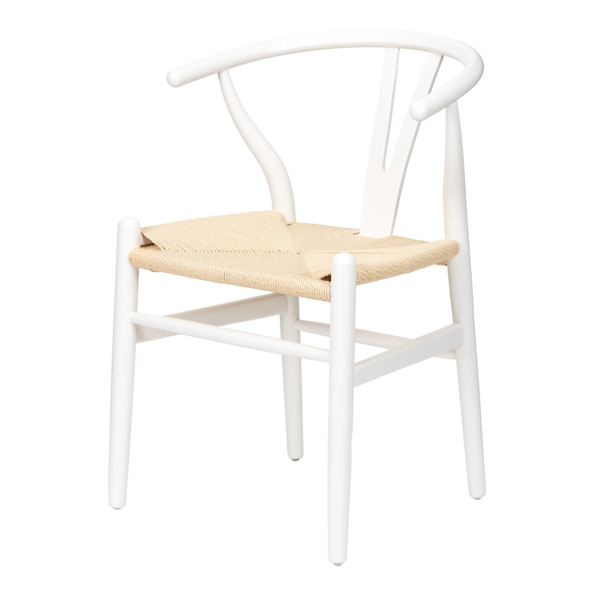 Its curved back and wishbone design add a stylish touch, while the woven natural paper rope seat provides both comfort and contrast. Ideal for dining spaces, hallways, or bedrooms, this versatile chair effortlessly enhances any interior with its timeless appeal.
