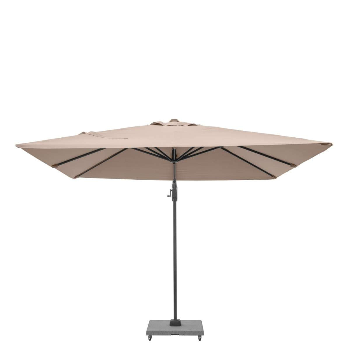 The parasol, in Taupe, is made from premium-class fabric, which is water-repellent and dirt-resistant protecting you from the elements and also the sun’s UV rays. We suggest using a cover to protect your parasol while not in use to maintain its quality, please see the Aerocover recommended below.