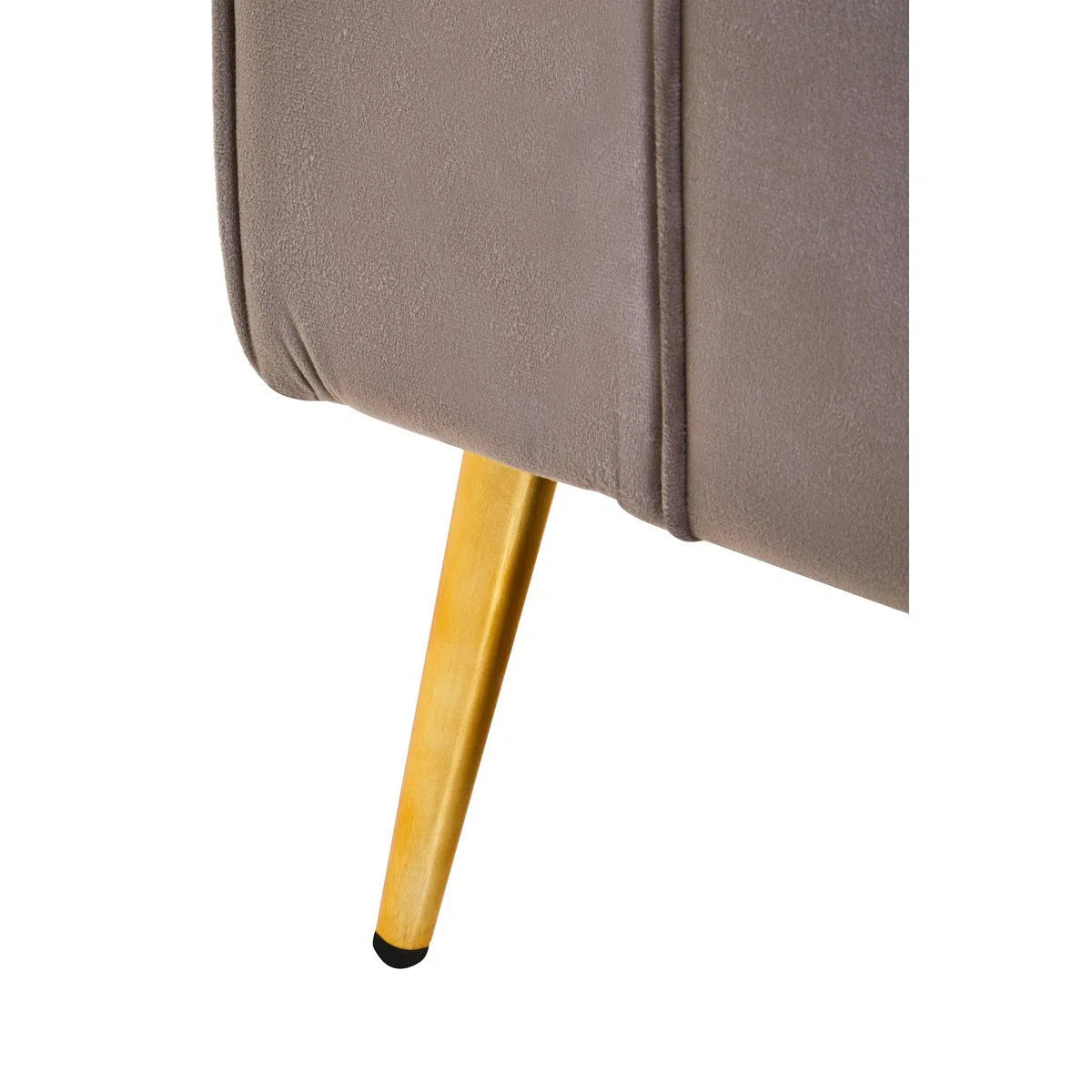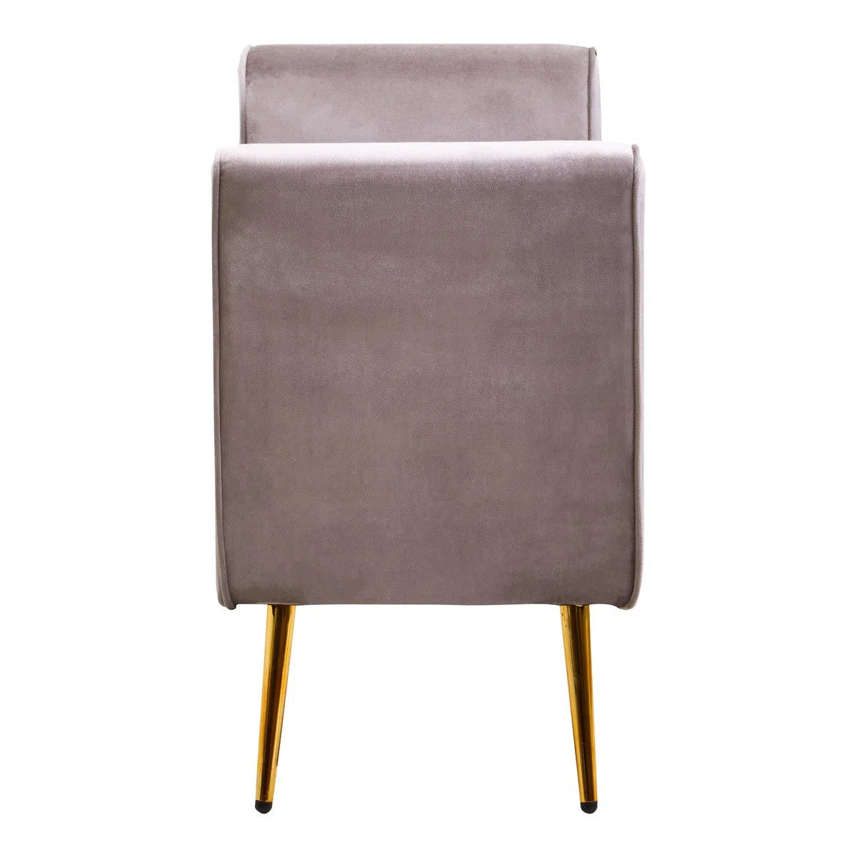 The angular gold finish legs provide a striking contrast to the rich velvet upholstery, elevating the bench's visual appeal and giving it a modern, luxe aesthetic. The combination of soft velvet and sleek metal legs makes this bench a standout piece.