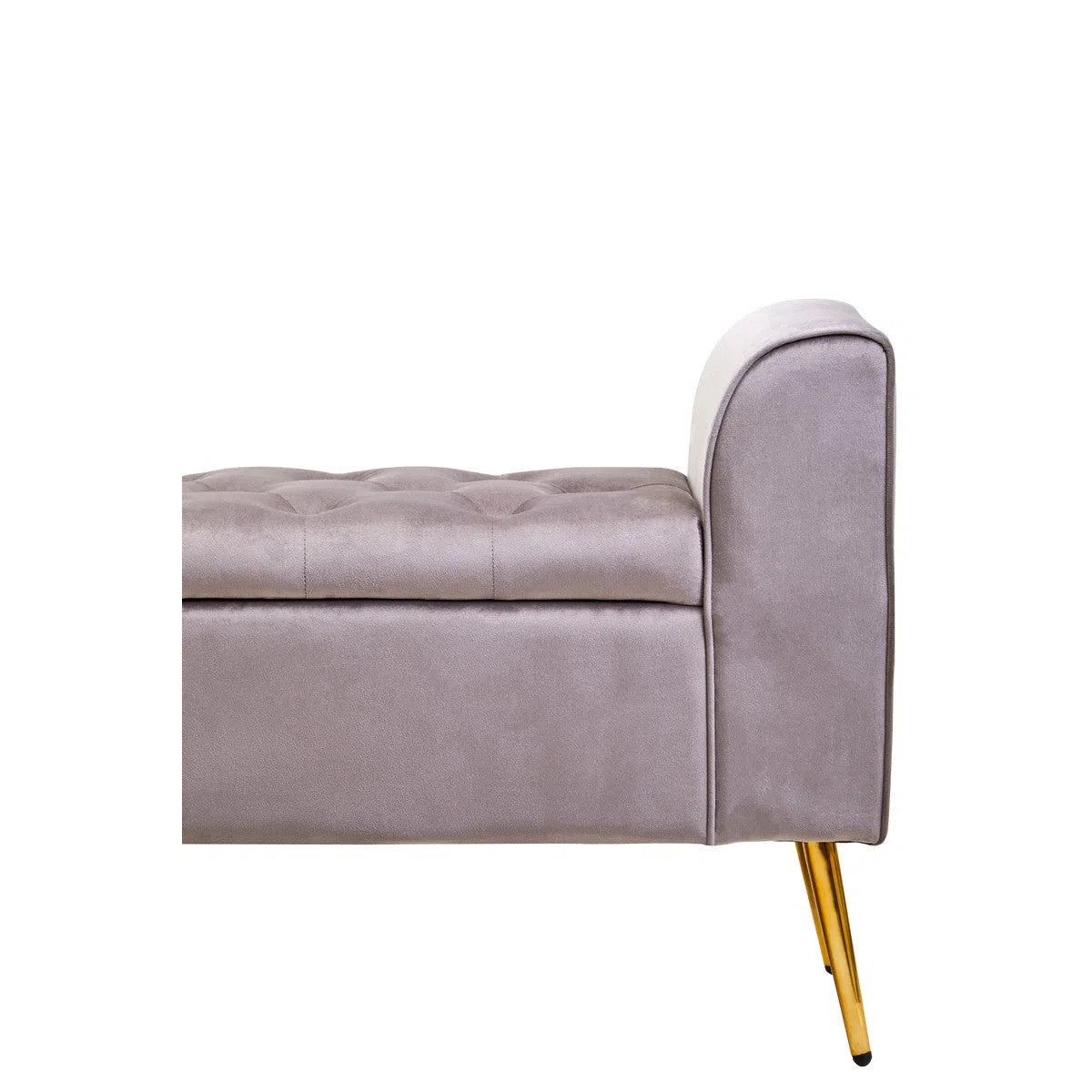 The Lorenzo storage bench is upholstered in luxurious mink velvet, offering a refined touch to any space. The plush cushioning with a tufted top not only adds comfort but also enhances the overall style, creating a sophisticated seating option.