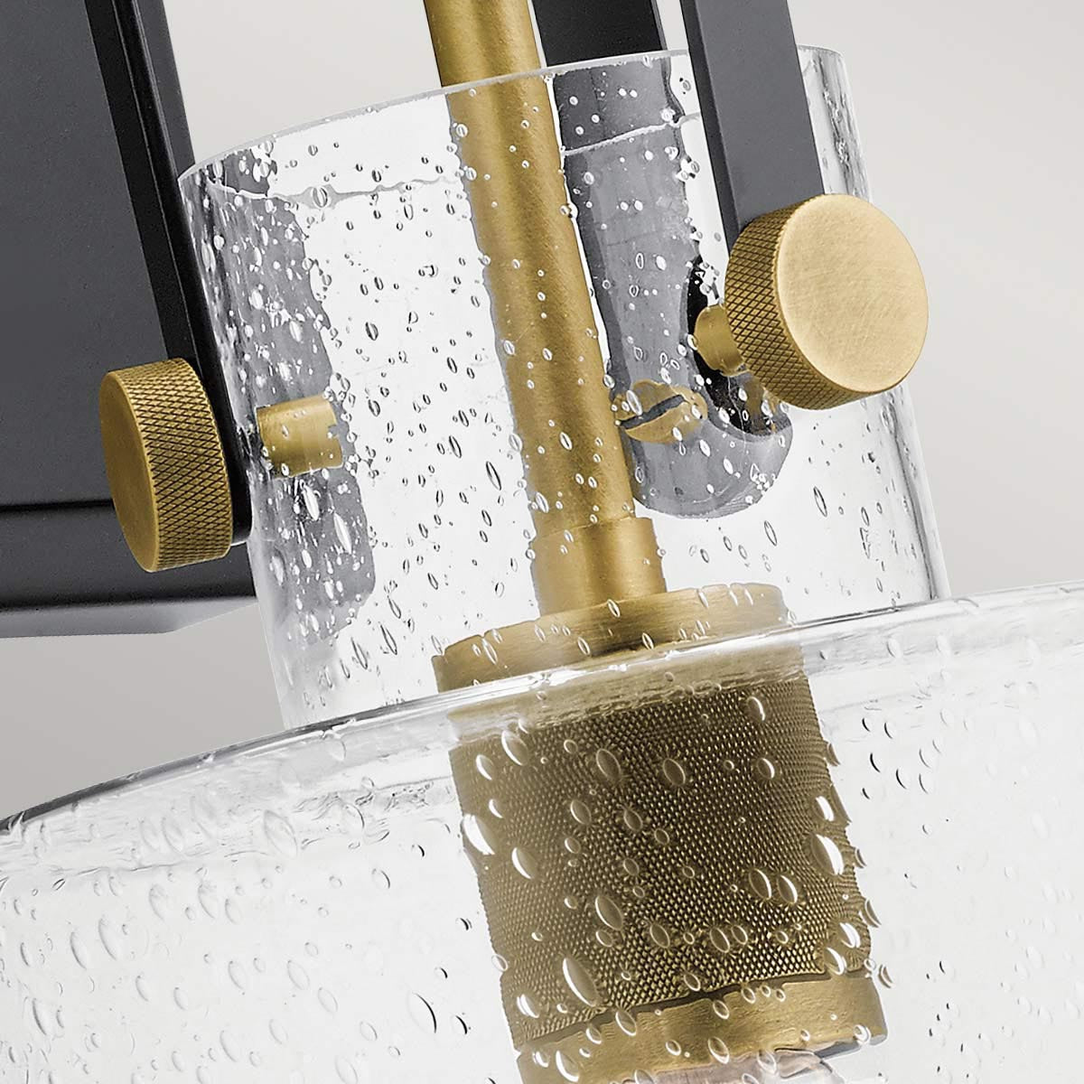 The mixed finishes on the arms, sockets and subtle details contrast beautifully with the clear seeded glass shades.