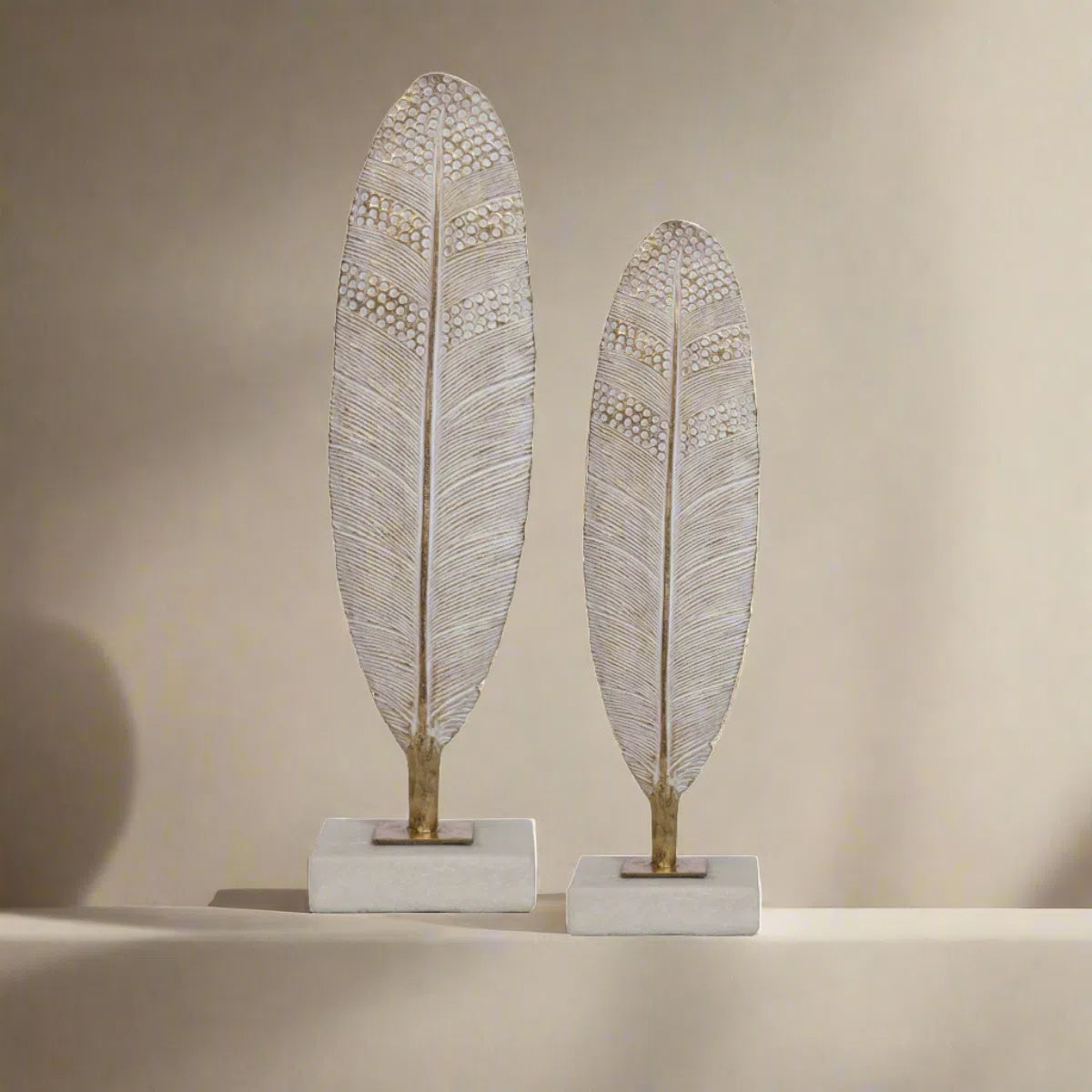 Infuse your space with a bohemian flair using our enchanting set of two feather sculptures. Effortlessly chic and understated in design, these exquisite feathers promise to elevate any home decor with their innate charm.
