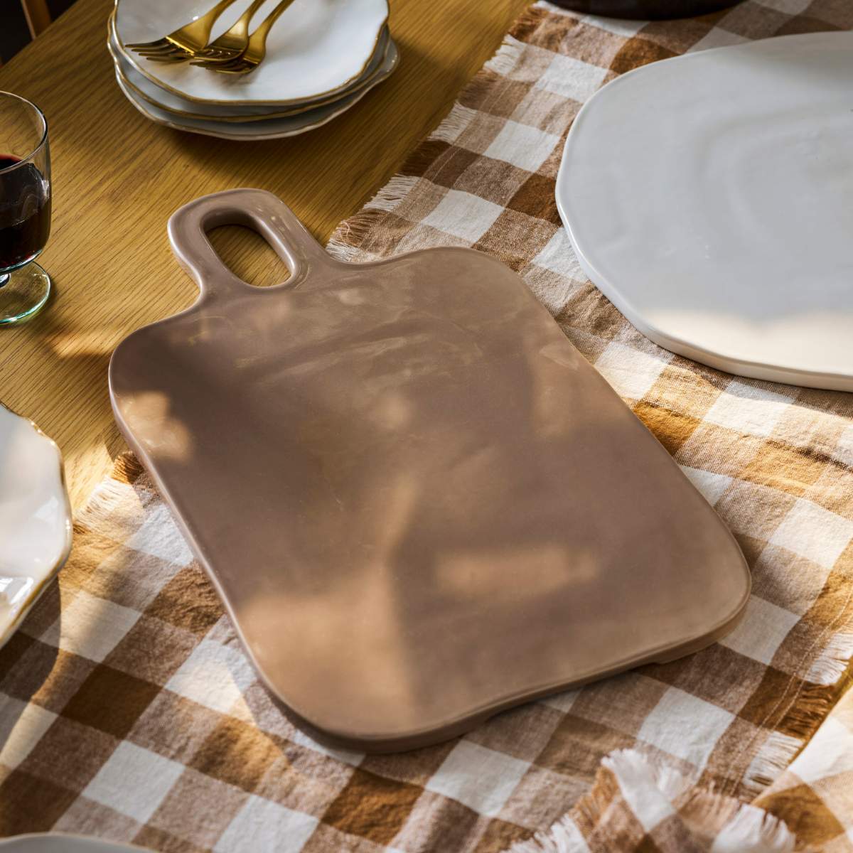 Line up our Alderley Rectangular Serving Board with cheese, charcuterie and fruit for a showstopping snack board that guests will love. Finished with a truffle-coloured reactive glaze, this beautiful stoneware board has an organic feel to it, and it's the perfect shape for the centre of the dining table. It looks equally good sitting on the worktop leaning against the wall when it's not in use. Also available in round and chalk-coloured versions.