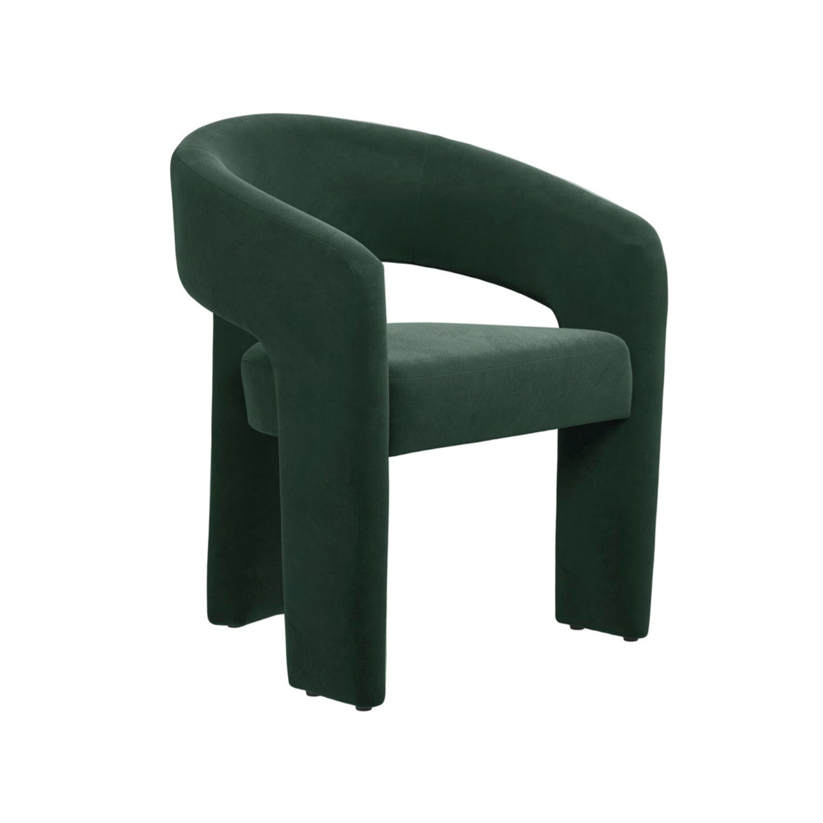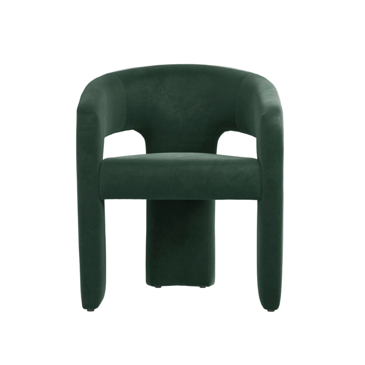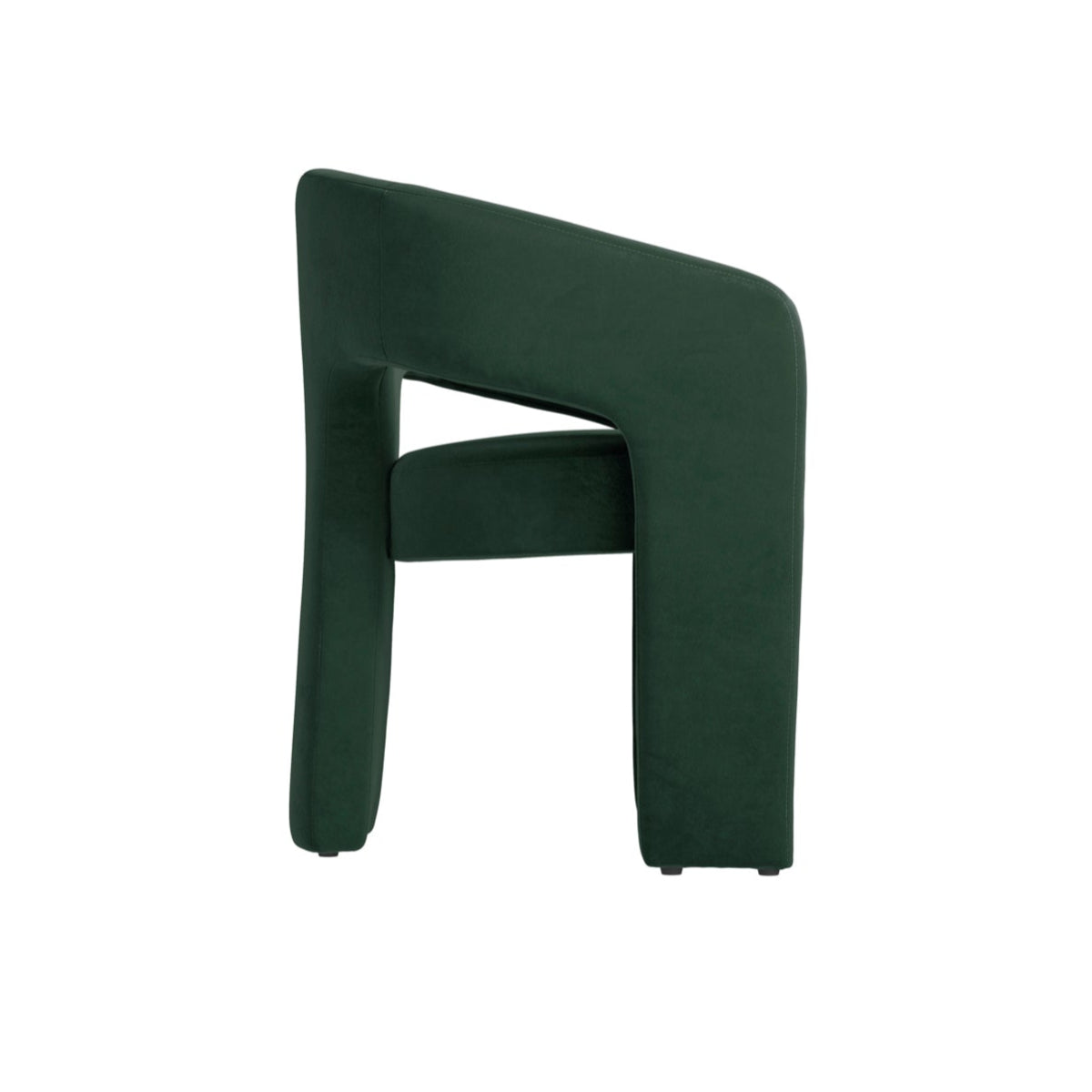 Enhance your dining space with the Alba Green Fabric Dining Chair. The Alba chair features a soft forest green velvet finish that blends comfort with sophisticated style. Its sleek modern design, accentuated by distinctive cut-out detailing, makes it an ideal choice for a range of dining settings, from minimalist to eclectic. Whether arranged around a dining table or showcased as a standalone accent piece, the rich velvet texture of the Alba chair adds a luxurious touch to your home.