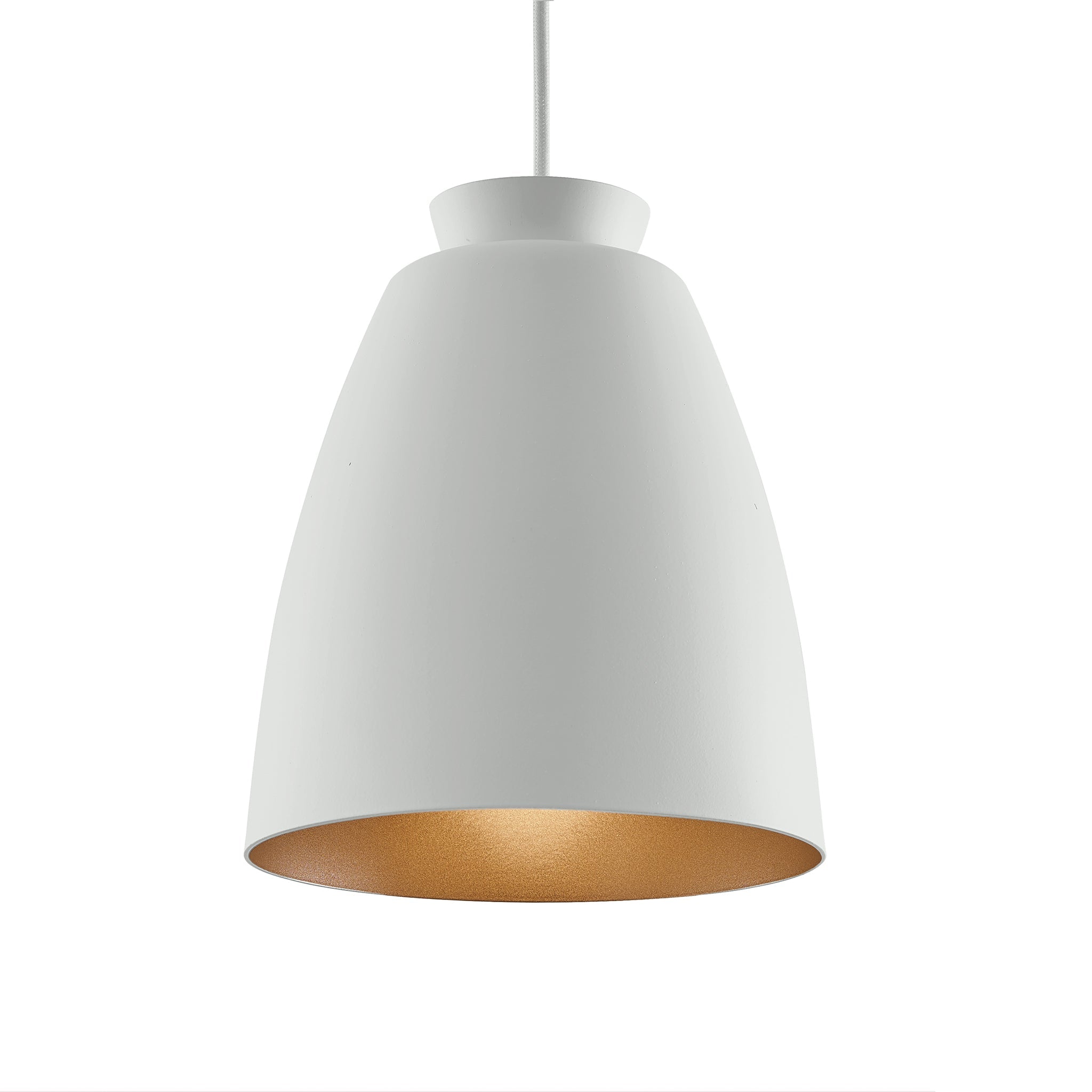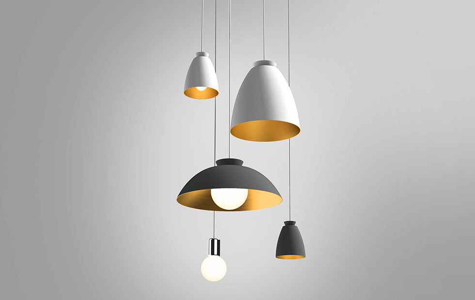 Chelsea 18 Suspension Light, a new range of spun aluminium pendant lights designed by James Bartlett. With a simple form reminiscent of an upturned teacup, these classic pendants are named after a traditional variety of teaware identified as ‘Chelsea’. Each model is available with a choice of a white interior, or a classic matt black or white exterior with a contrasting antique gold interior. Light also spills from the top, creating a delicate illumination around the exterior. These simple forms result in beautiful pendants that suit a wide variety of applications. The versatile range works perfectly as a cluster, especially effective with multiple colour choices.