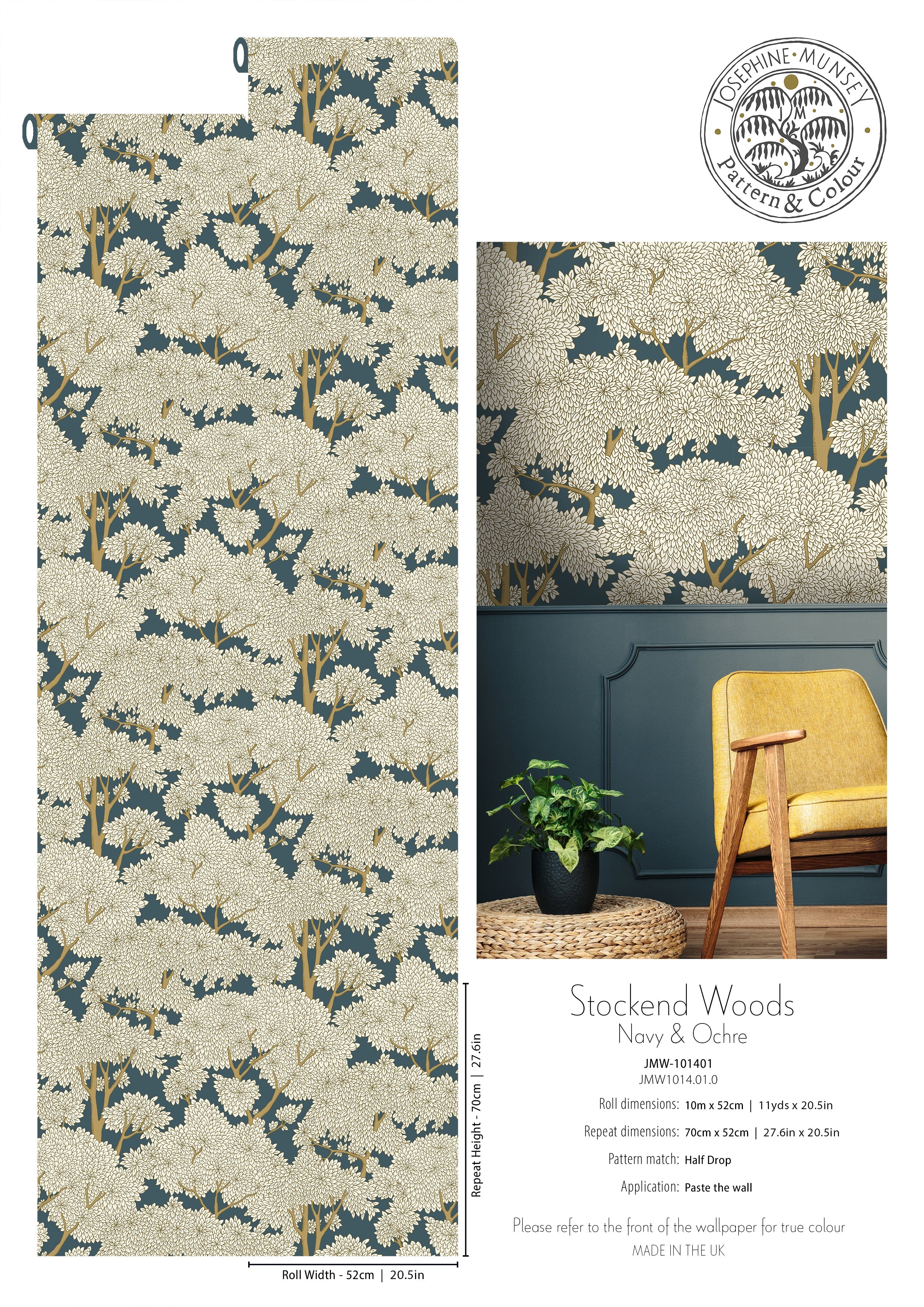 Josephine Munsey Stockend Woods Wallpaper - Navy Ochre