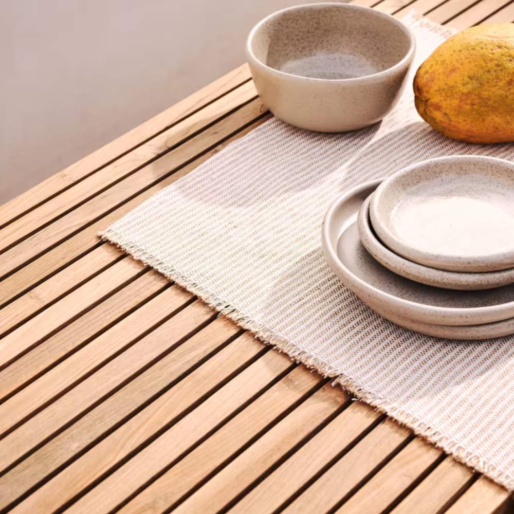What better than natural materials to decorate your outdoor spaces and connect with the environment? The Canadell collection, crafted from solid teak wood, is perfect for outdoor settings. Designed to withstand the elements, it brings a blend of durability and style to any outdoor area. Enjoy this timeless piece with no limits!