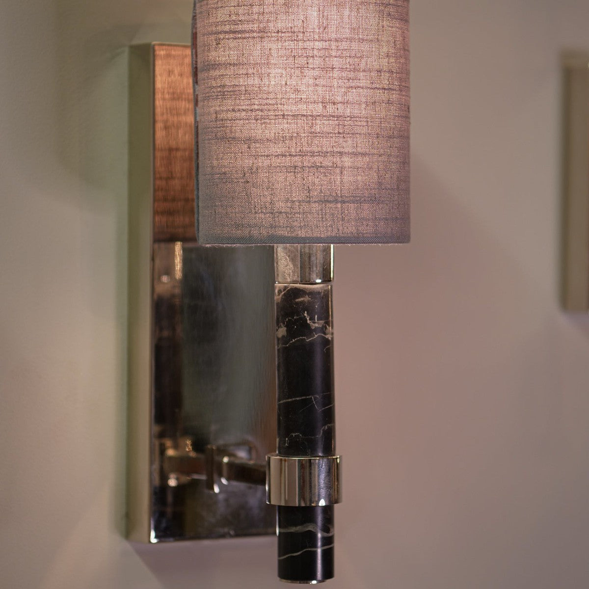 The Lola Wall Light is an elegant and versatile addition to any interior with its sophisticated combination of black marble and brass. The sleek grey shade adds a touch of modernity to the design, making it perfect for any setting.