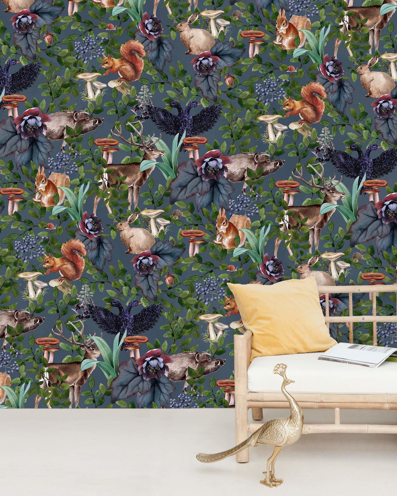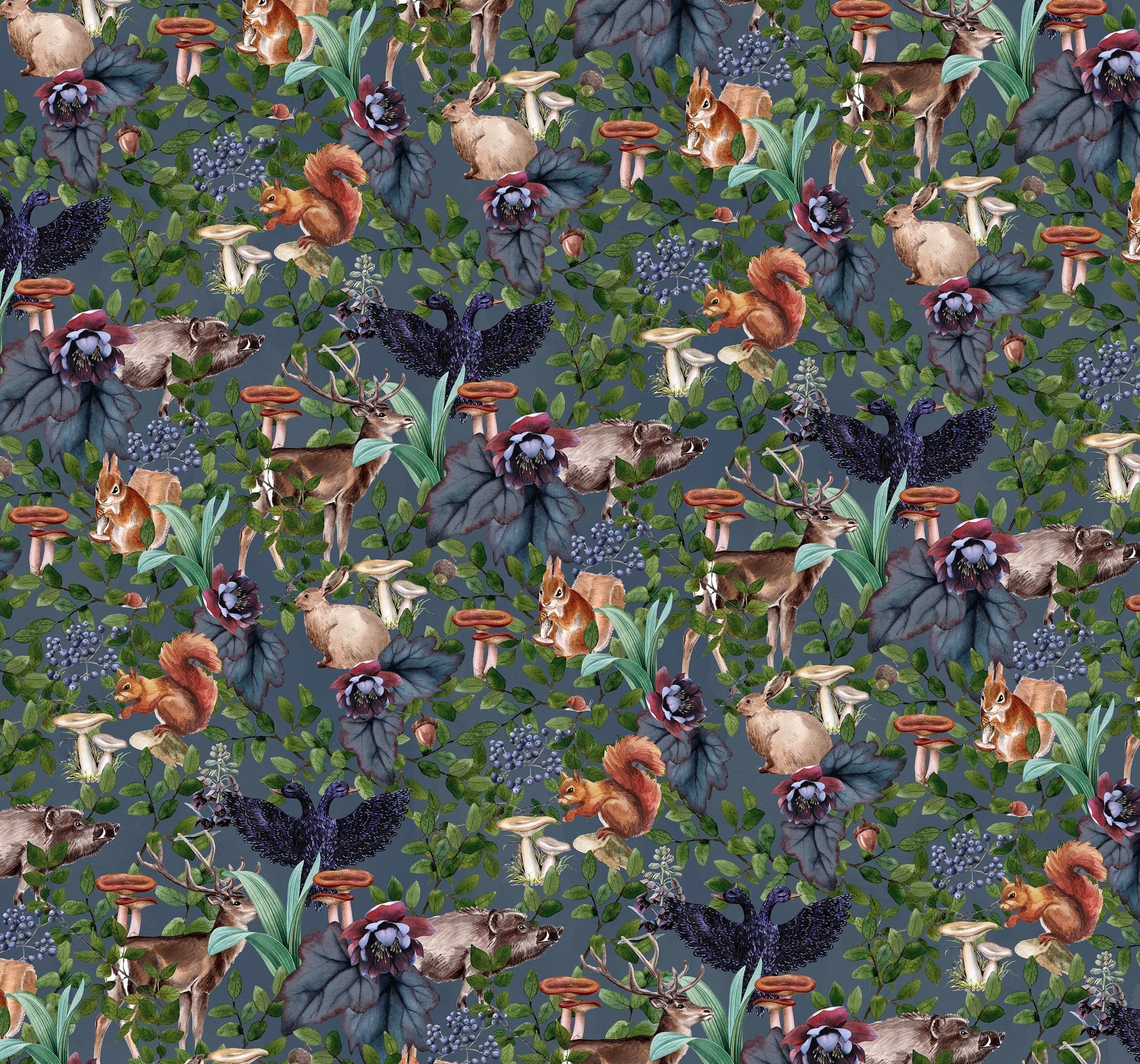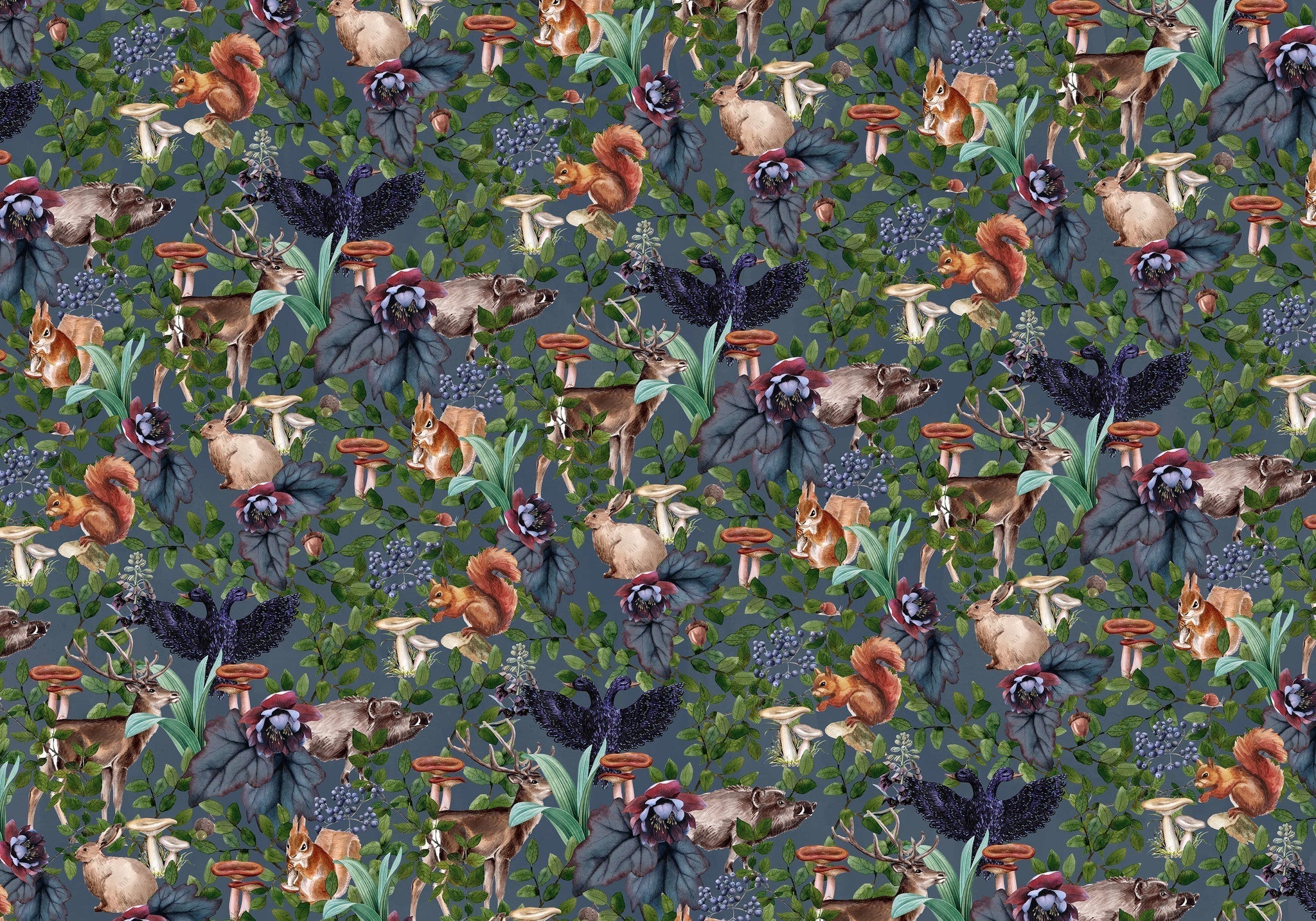 Oh Deer design with cute deers and squirrels in a cosy autumn setting. Lovely and unique deep toned background. Design by Creative Lab Amsterdam.