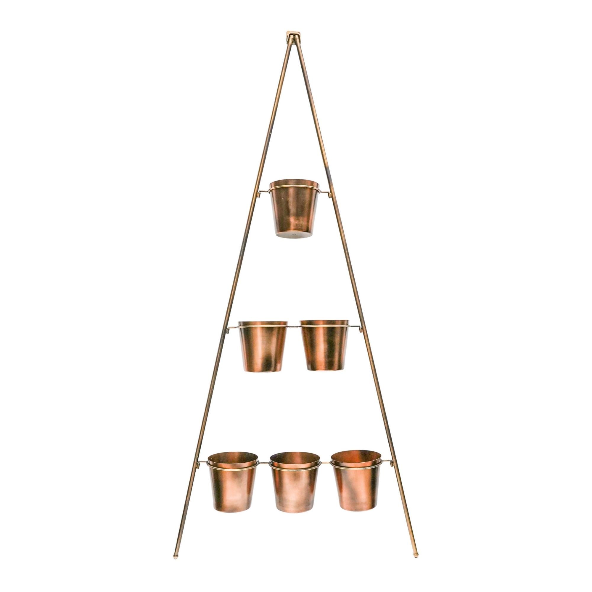 Ivyline Outdoor Vertical Gold Metal Wall Plant Stand with Planters