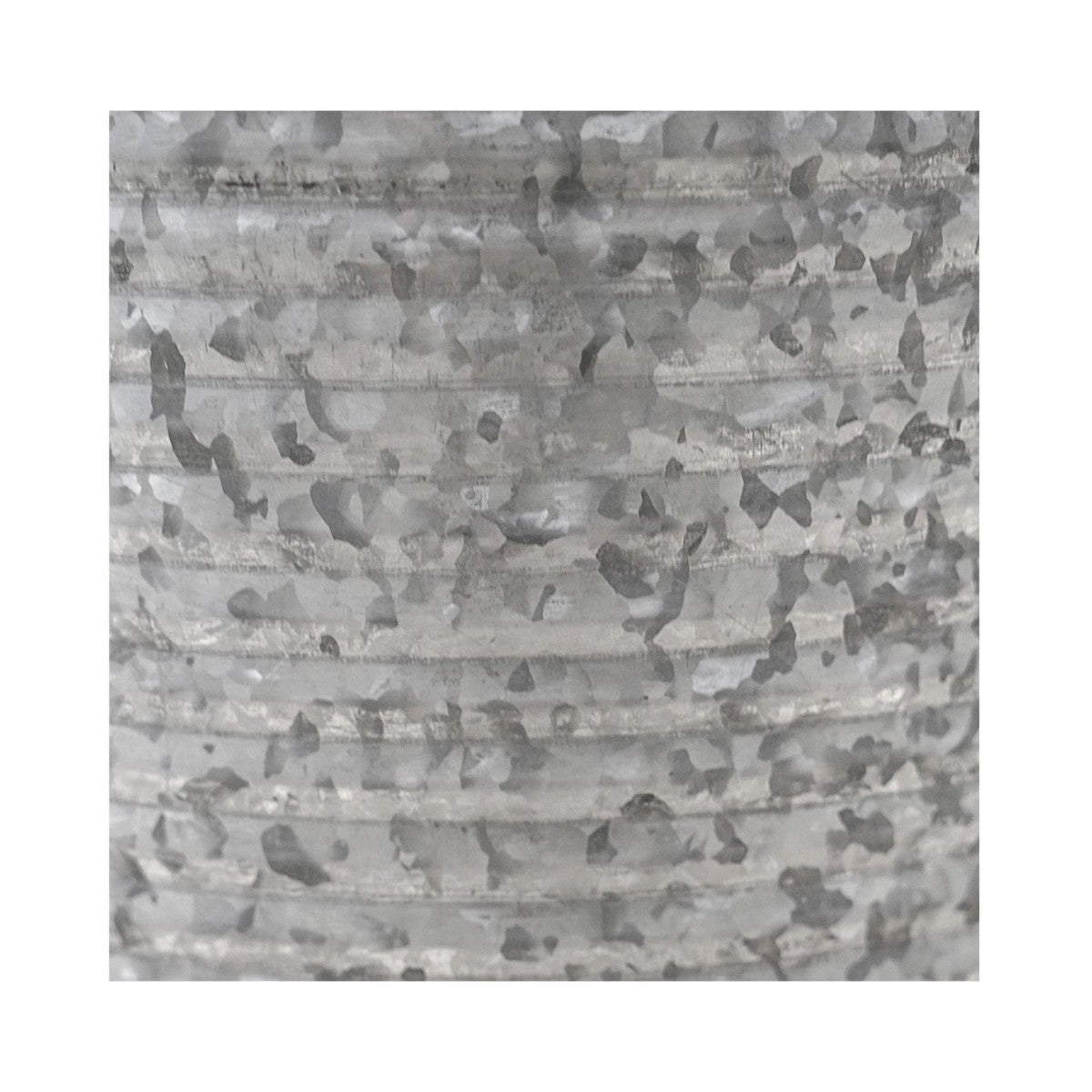 Indulge in understated charm with our ribbed galvanised vase, elevating your blooms in both style and function. Sturdy in sunlight and impervious to frost and rust, it boasts built-in drainage for effortless plant care.
