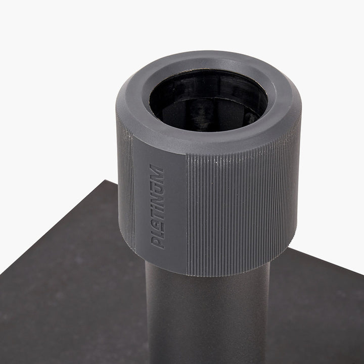 Sturdy 40KG black granite parasol base with stainless steel tube, anti-slip system, and optional wheels. Fits poles up to 48mm and offers secure, wind-resistant garden use.