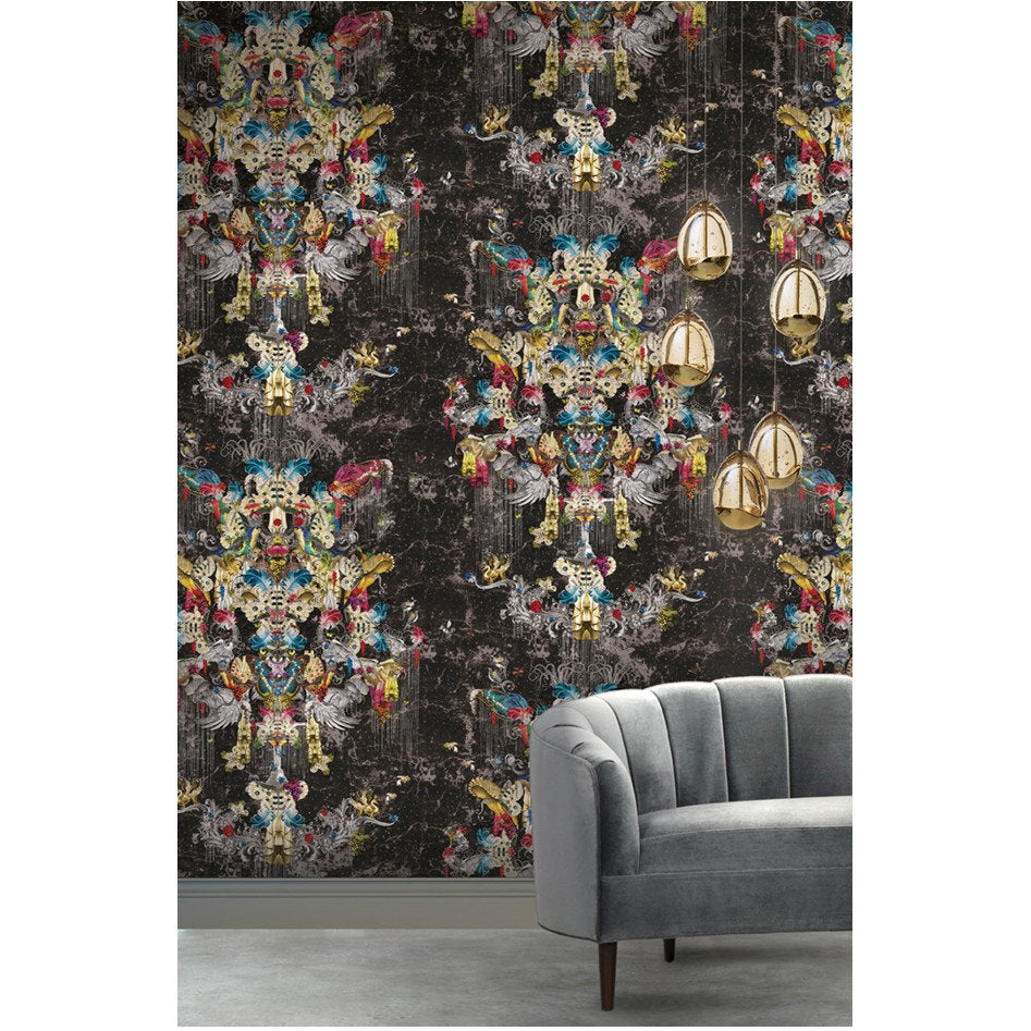 Take a trip to paradise with this effervescent Tropicus wallpaper print in Charcoal. The vibrant tropical colours will transport you to utopia where you will encounter an abundance of jungle animals in all their extravagance. The kaleidoscopic design set against the dark grey background is a work of fantasy. One of our most vibrant styles, this wallpaper exudes excitement and charisma and will brighten any room.