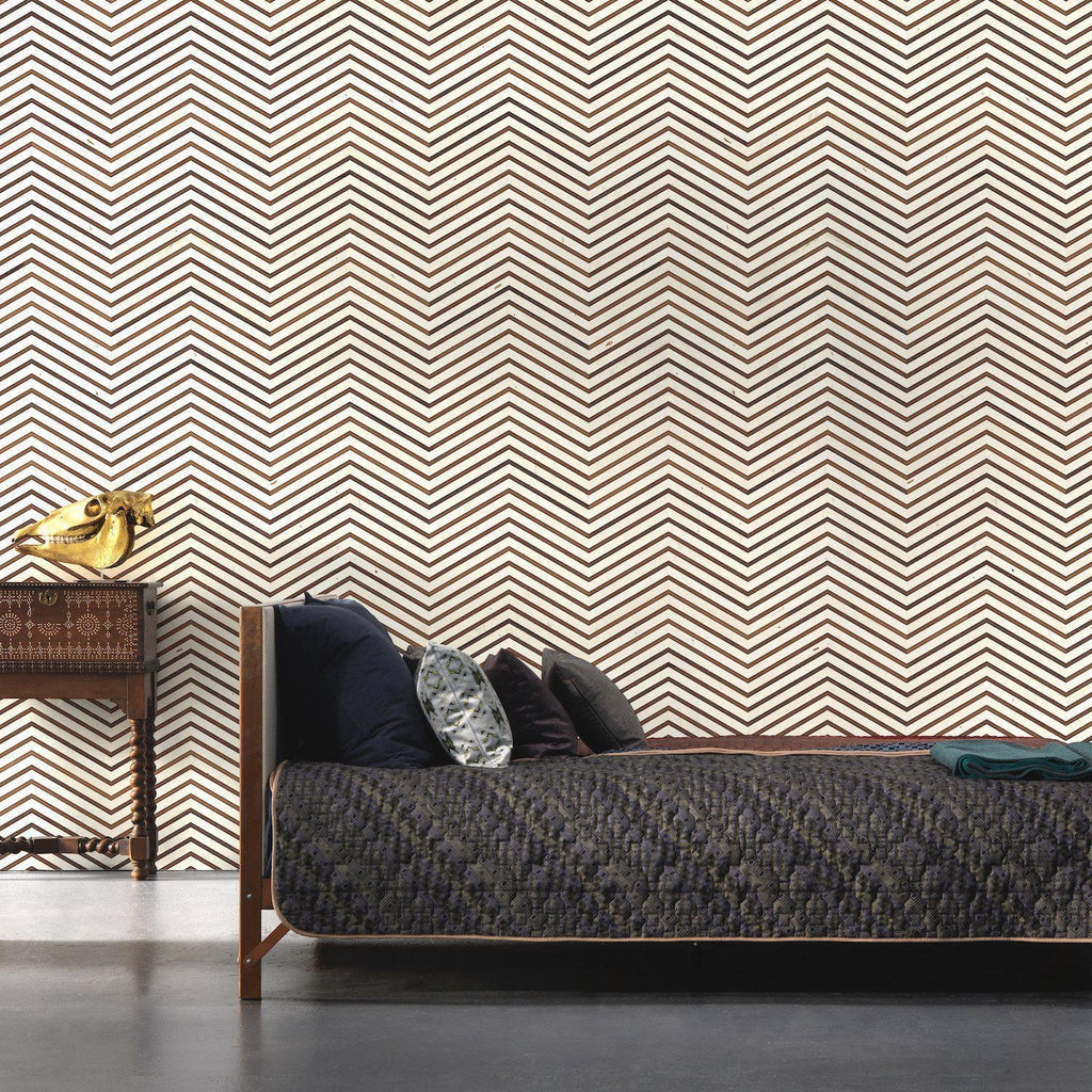 NLXL Timber Strips Scrapwood On Teak Chevron Wallpaper